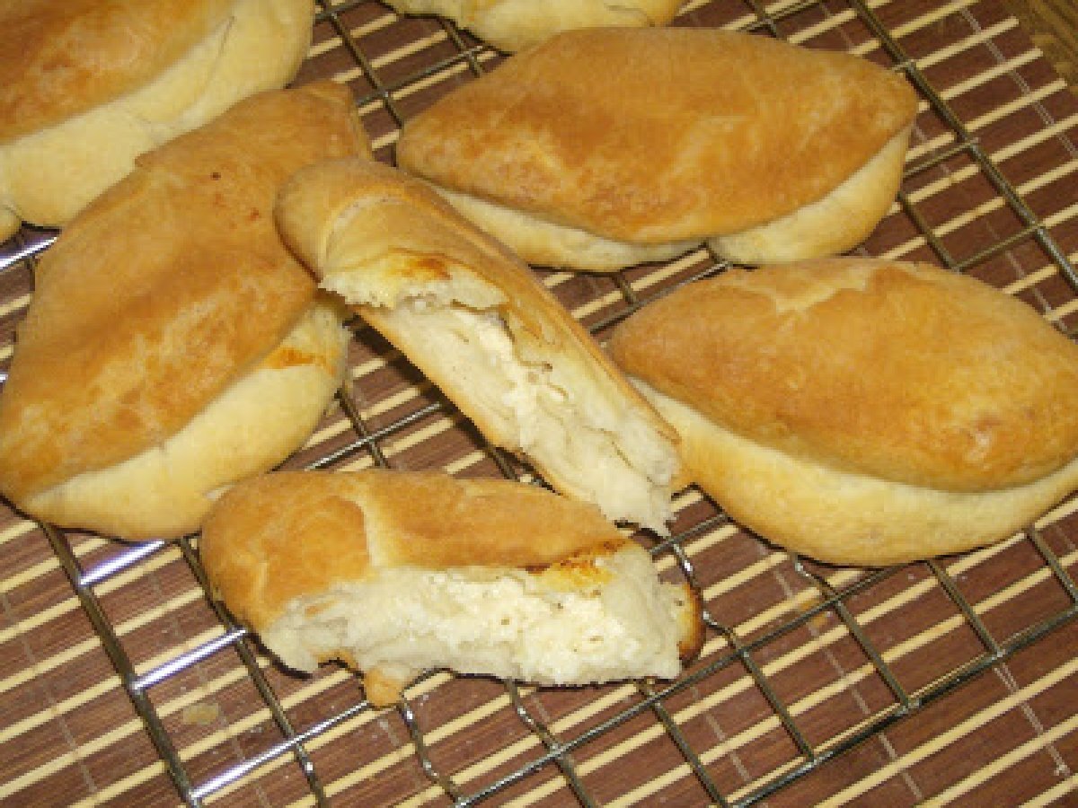 - Grasimea se topeste, iar branza se sfarma.Se freaca drojdia cu zahar pana se lichefiaza si se adauga 100 ml lapte caldut si 150 g faina.Aluatul se lasa sa creasca pana isi dubleaza volumul, apoi se adauga restul de lapte, precum si restul de faina si sarea.Dupa ce s-a framantat bine, se lasa sa creasca 15 minute.
