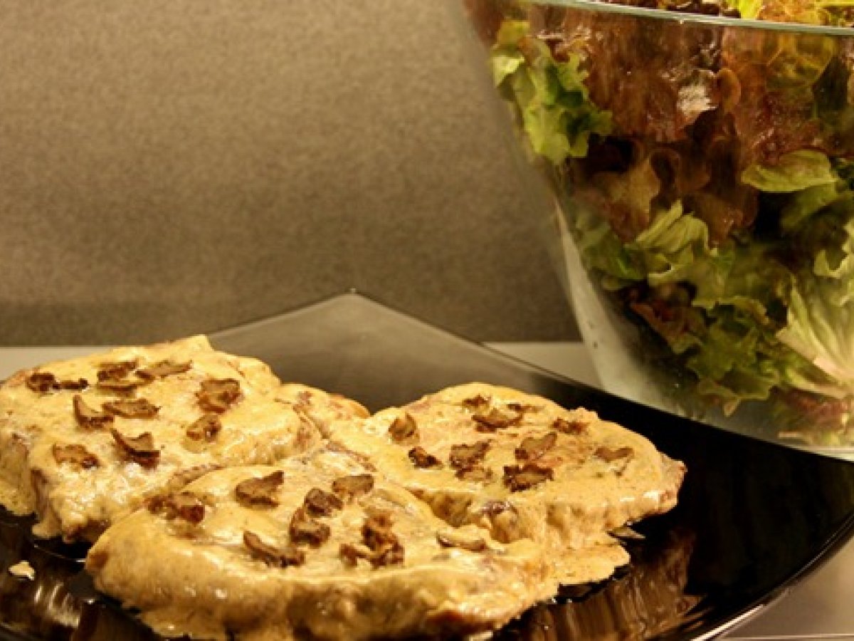 Muschi de porc in sos cu trufe albe PrecedentulUrmătorul AlteleFoarte ușor35 min Trimite unui prieten Printează pagina Adresează o întrebare autorului Postează o poză cu rețeta gătită de tine Ingrediente 4 500 g muschi file 200 ml smantana 50-100 ml vin alb sec 25 g unt /untura sau ulei masline 1 catel usturoi sare,piper