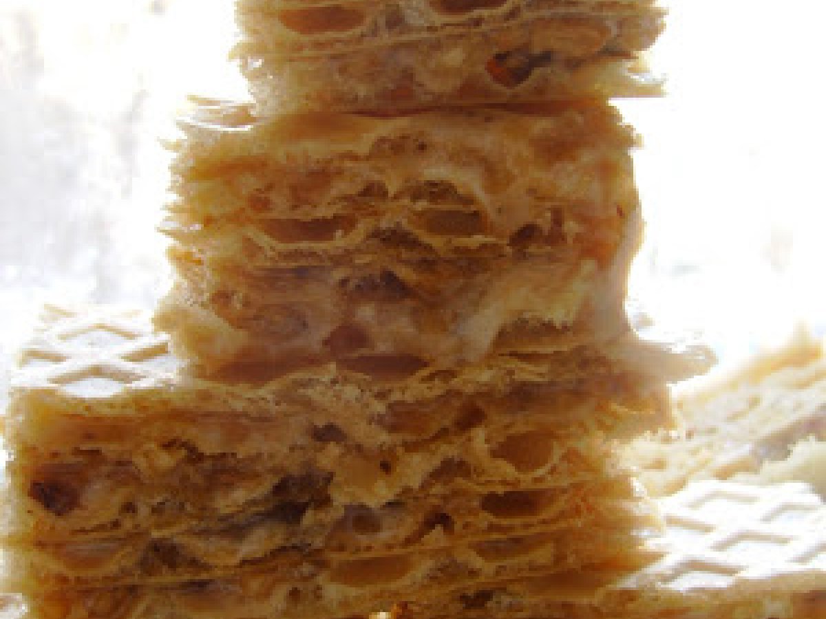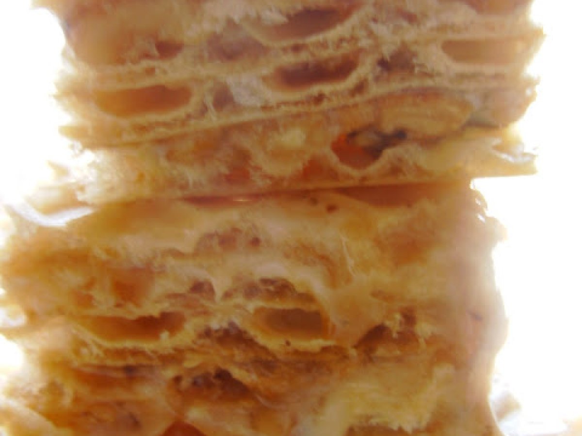 Napolitana de casa PrecedentulUrmătorul AlteleFoarte ușor40 min Trimite unui prieten Printează pagina Adresează o întrebare autorului Postează o poză cu rețeta gătită de tine Ingrediente 6 600 g zahar 4 oua 2 linguri de miere 200 g nuci prajite si macinate 1 pachet de unt 82% grasime 1 pachet de foi de napolitana, sau asa cum le stiai tu din copilarie foi Lica