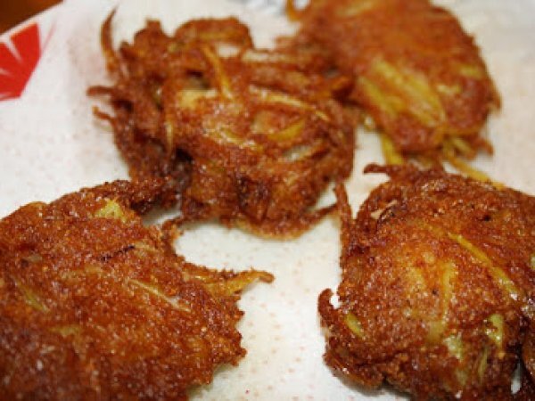 Onion bhaji - chiftelute indiene cu ceapa PrecedentulUrmătorul AlteleFoarte ușor25 min Trimite unui prieten Printează pagina Adresează o întrebare autorului Postează o poză cu rețeta gătită de tine Ingrediente 4 3 cepe grasane, 1 ardei iute tocat, 1 lingurita de Garam Masala, 1/2 lingurita de chimen si 1/2 lingurita de coriandru, - zdrobite in mojar , 1lingurita de tumeric, 1 lingura de zeama de lamaie, 100 g faina , 3 linguri apa rece, 1/2 lingurita praf de copt.