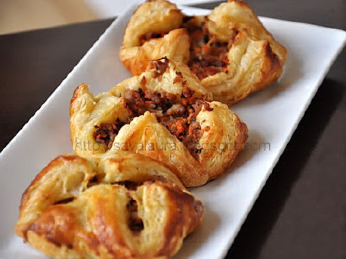 Pachetele cu umplutura de carne si morcovi PrecedentulUrmătorul AlteleFoarte ușor35 min Trimite unui prieten Printează pagina Adresează o întrebare autorului Postează o poză cu rețeta gătită de tine Ingrediente 4 400 g. aluat foietaj 150 g. morcovi 2 linguri patrunjel tocat proaspat sau menta 250 g. carne tocata mixta 2 linguri ulei sare, piper 1 ou 1 lingura lapte