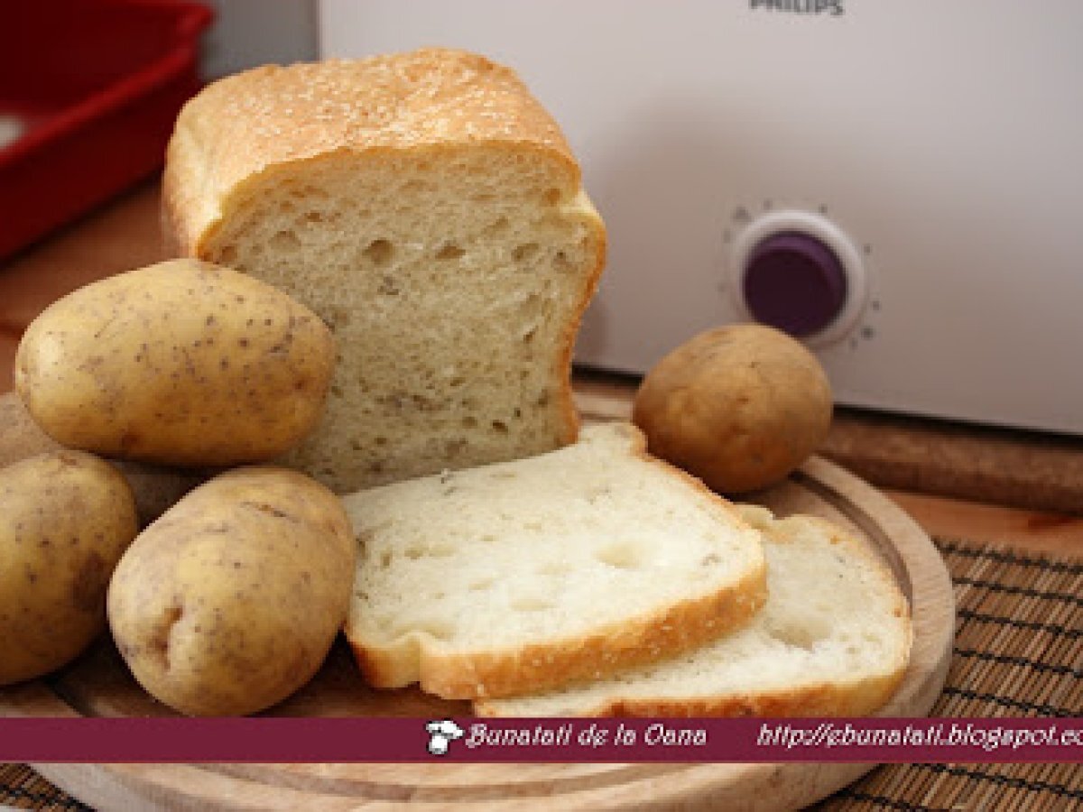 Paine cu cartofi PrecedentulUrmătorul AlteleFoarte ușor50 min Trimite unui prieten Printează pagina Adresează o întrebare autorului Postează o poză cu rețeta gătită de tine Ingrediente 6 200 ml apa in care au fiert cartofii 2 linguri ulei 375 g faina pentru paine 125 g piure rece de cartofi 1 lingura lapte praf - 1 lingurita sare 1 1/2 lingurite zahar 1 lingurita drojdie uscata optional 2-3 linguri de seminte de floarea soarelui
