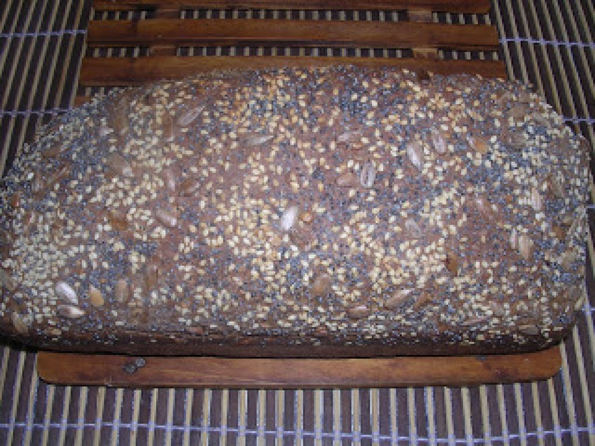 Paine integrala cu seminte PrecedentulUrmătorul AlteleFoarte ușor50 min Trimite unui prieten Printează pagina Adresează o întrebare autorului Postează o poză cu rețeta gătită de tine Ingrediente 6 500 g de faina integrala de grau si secara 33o ml apa,1 lingurita de zahar 12 g drojdie proaspata 1/2 lingurita de sare 2-3 linguri ulei de masline 1 lingurita seminte de mac 1 lingura seminte de susan 1 lingura seminte de floarea soarelui 1 lingura seminte de dovleac tocate
