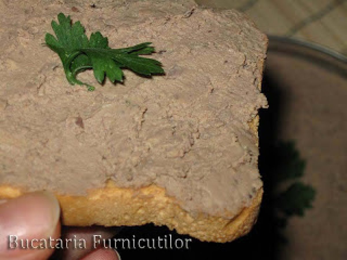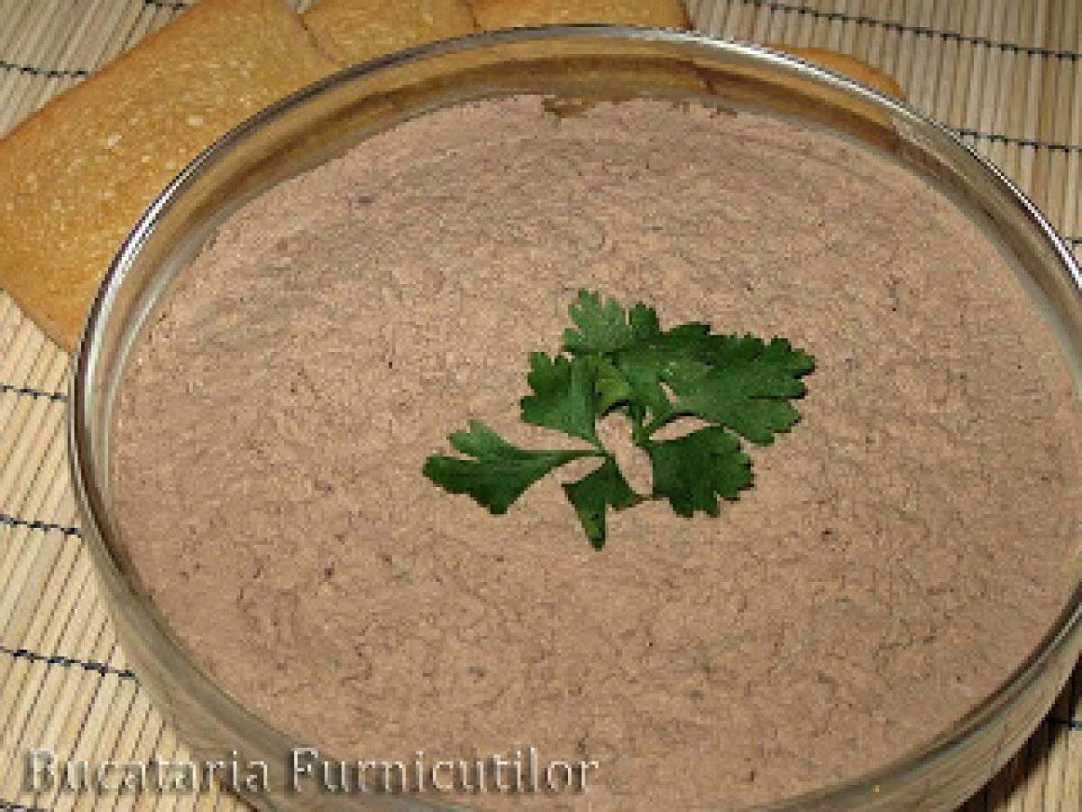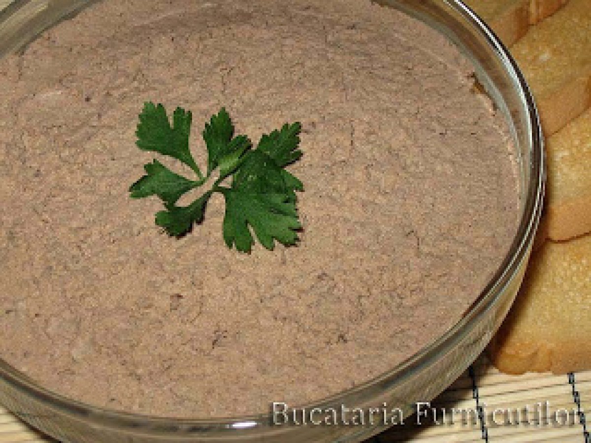 Pateu din ficatei de pui PrecedentulUrmătorul AlteleFoarte ușor25 min207 Kcal Trimite unui prieten Printează pagina Adresează o întrebare autorului Postează o poză cu rețeta gătită de tine Ingrediente 4 500 g ficat de pui 30 g unt la temperatura camerei sare, piper Cost estimat: 6.24Euros€ (1.56€/porție)