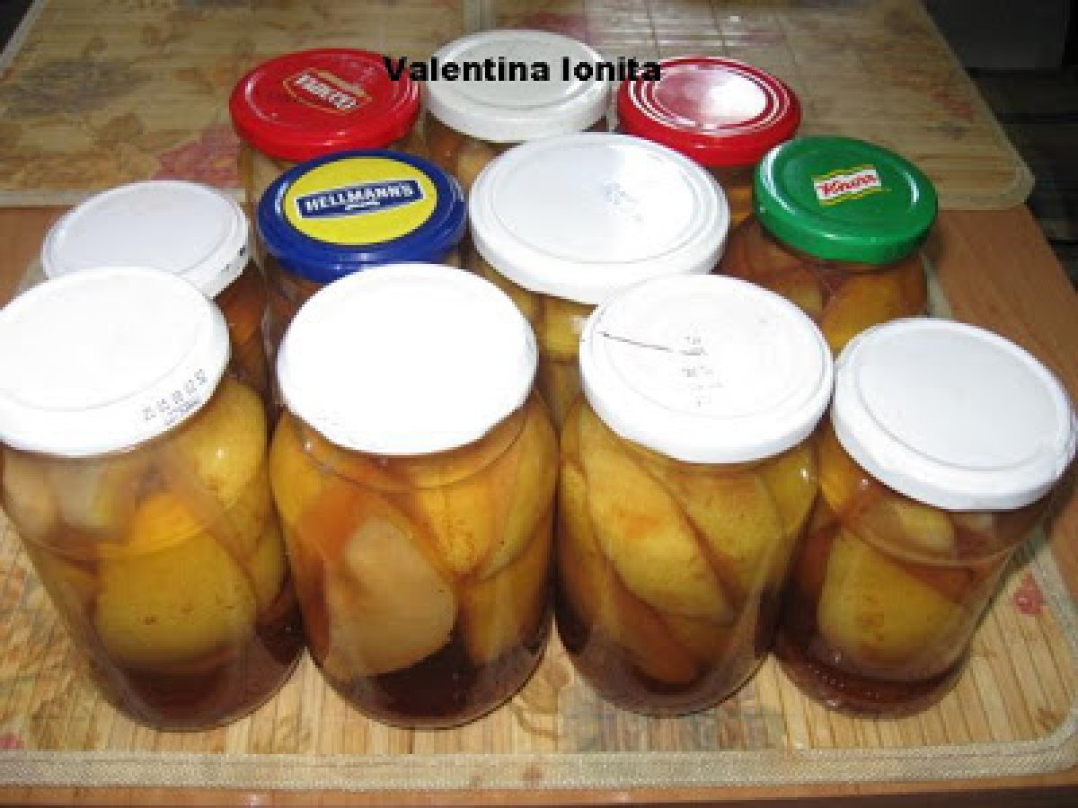 Pere cu zahar si otet AlteleFoarte ușor15 min Trimite unui prieten Printează pagina Adresează o întrebare autorului Postează o poză cu rețeta gătită de tine Ingrediente 5 1,5 kg pere tari 1/2 l apa 1/2 l otet din vin 300 g zahar o lamaie 4 foi de dafin 2 lingurite boabe de mustar o lingurita scortisoara