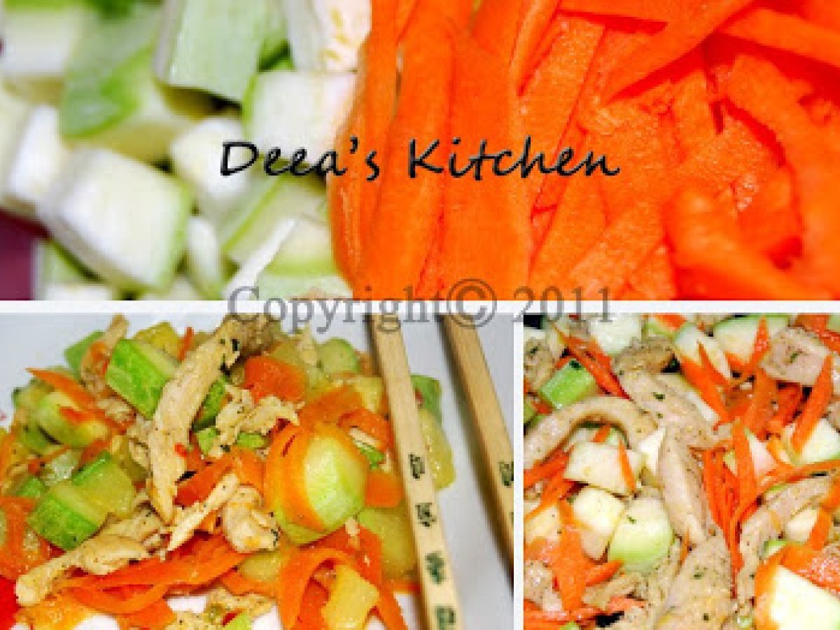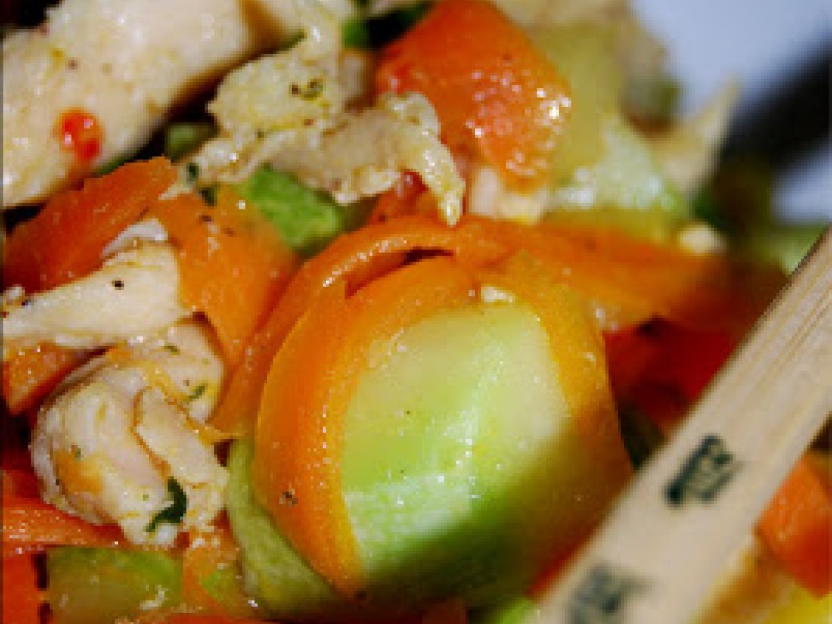 Piept de pui cu zucchini PrecedentulUrmătorul AlteleFoarte ușor20 min Trimite unui prieten Printează pagina Adresează o întrebare autorului Postează o poză cu rețeta gătită de tine Ingrediente 4 1/2 piept de pui 1 zucchini 1 morcov 1 lingura ulei sare, piper