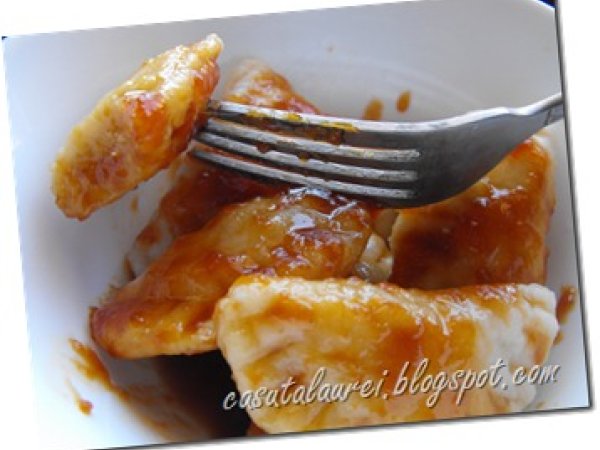 - Nu este nevoie sa-l framantati prea mult, sa nu se intareasca. Una am mai adaugat si o lingura de ulei, nu scrie in reteta dar mie asa mi s-a parut ca trebuie. Intindem aluatul si-l decupam cu un pahar , rotundurile de aluat ce rezulta le luam rand pe rand, punem in mijlocul lor cate o lingurita de umplutura, le pliem si lipim marginea, apasand cu ajutorul unei furculite.