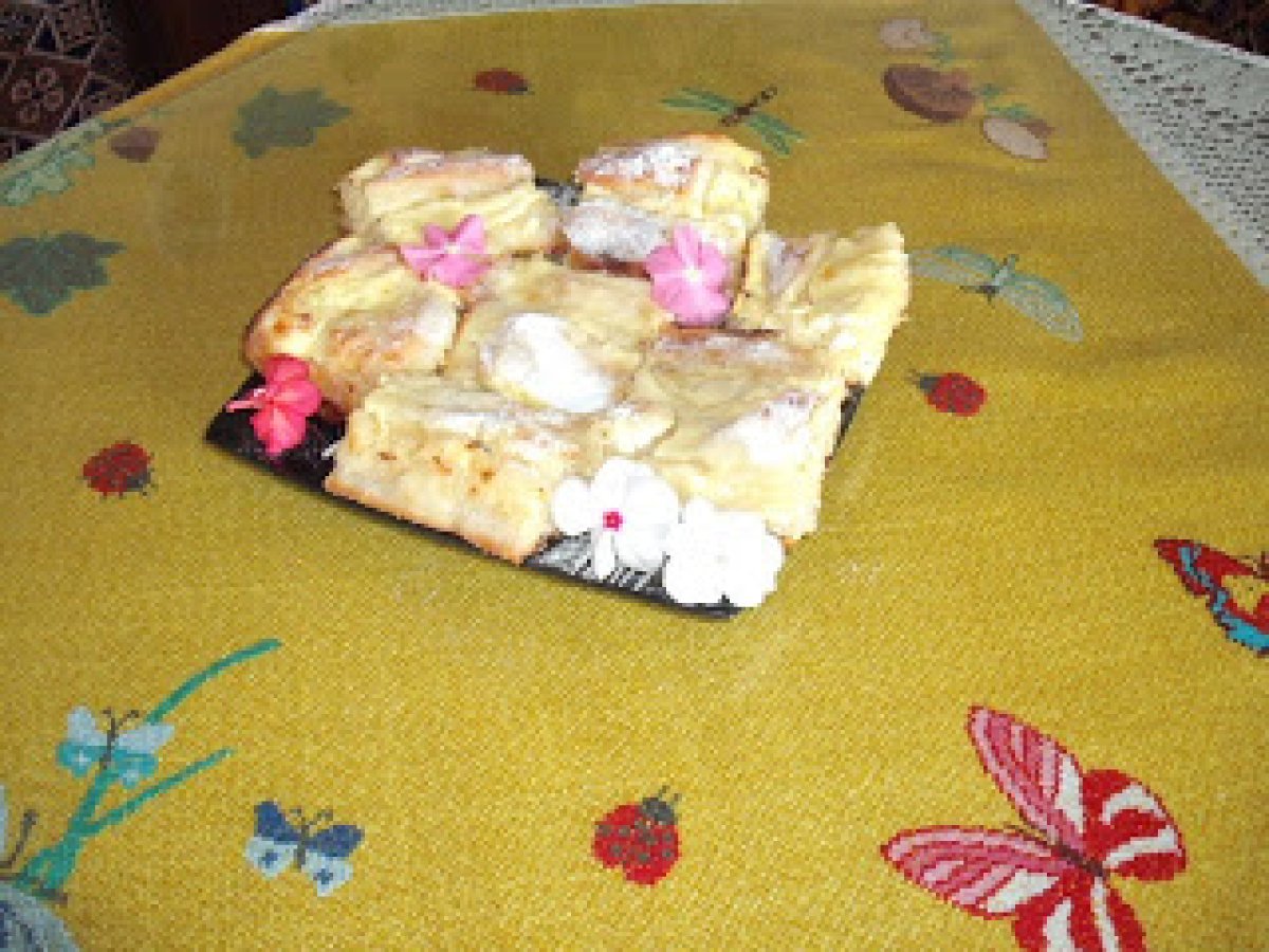 Placinta creata PrecedentulUrmătorul AlteleFoarte ușor50 min Trimite unui prieten Printează pagina Adresează o întrebare autorului Postează o poză cu rețeta gătită de tine Acest lucru tartă este foarte specific. Ingrediente 6 o tava : aluat cca 500 g 200ml apa calduta pentru framantat un praf de sare 20 g drojdie proaspata umplutura si decor : 500 g telemea nu foarte sarata 400 g iaurt gras 6 oua zahar pudra vanilat cca 100 ml ulei
