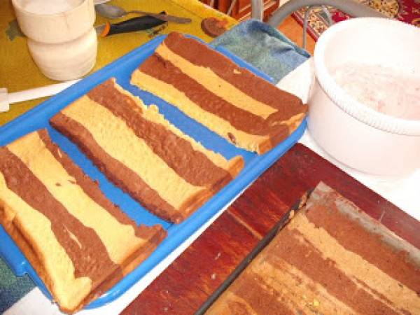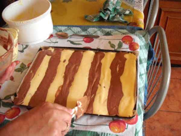 Prajitura bicolora cu glazura de scortisoara PrecedentulUrmătorul AlteleUșor57 min Trimite unui prieten Printează pagina Adresează o întrebare autorului Postează o poză cu rețeta gătită de tine Ingrediente 5 Pentru blat : 6 oua 6 linguri de zahar 6 linguri de faina esenta o lingura de cacaoa un praf de sare Pentru crema : 2 plicuri de crema rapida 500 ml lapterece 100 ml frisca lichda Pentru glazura : 250 g zahar pudra 2 linguri de frisca lichida un praf de scortisoara