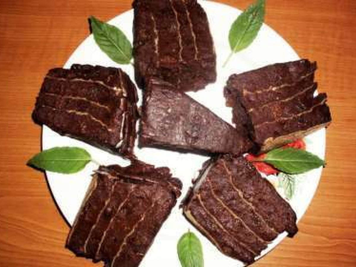 Prajitura cu foi de napolitana. AlteleFoarte ușor1 zi 6 h 30 m Trimite unui prieten Printează pagina Adresează o întrebare autorului Postează o poză cu rețeta gătită de tine Ingrediente 8 * 500 gr biscuiti populari * 1 pachet unt * 500 ml lapte * 6 linguri cacao * 1 cana zahar * 4-5 linguri de visinata * 100 gr stafide * 100 gr visine din visinata *2 foi de napolitana