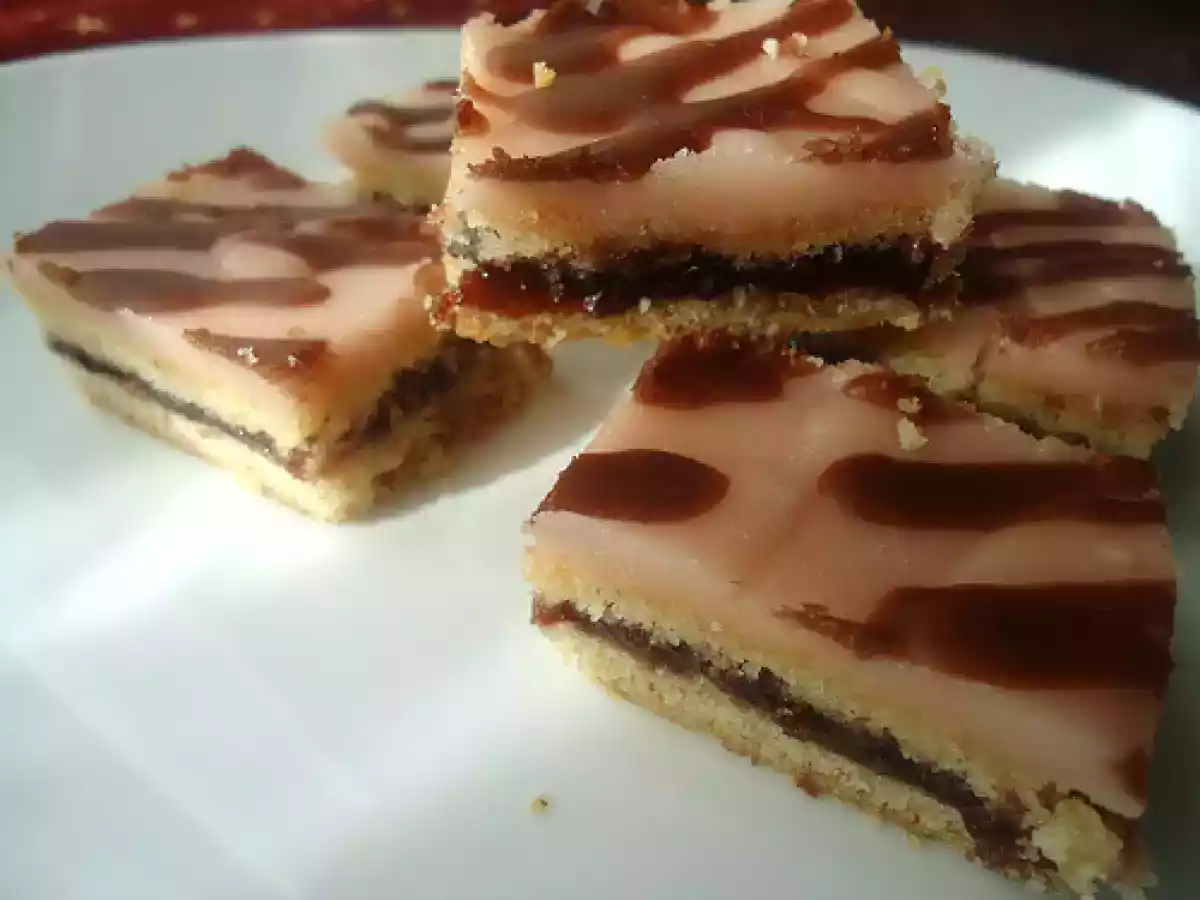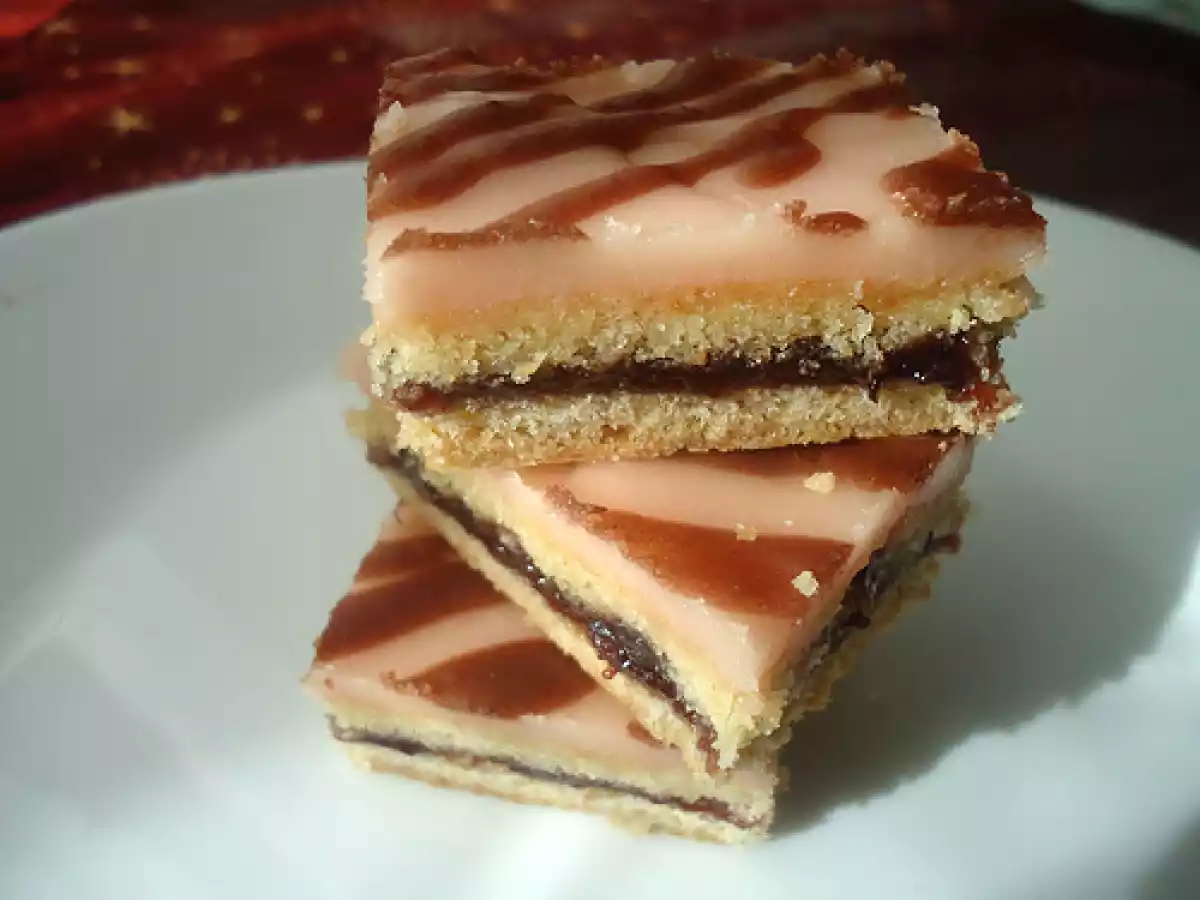 Prajitura de post cu gem de prune si glazura de zahar PrecedentulUrmătorul AlteleFoarte ușor55 min800 Kcal Trimite unui prieten Printează pagina Adresează o întrebare autorului Postează o poză cu rețeta gătită de tine Ingrediente 6 foi: 250 g margarina, 375 g faina, 180 g zahar pudra, un praf sare, o lingurita rasa bicarbonat sodiu stins cu zeama de lamaie, coaja rasa de la o lamaie si vanilie glazura: 200 g zahar pudra, 3-4 linguri apa fierbinte, colorant sau cacao, o lingura ulei Cost estimat: 1.96Euros€ (0.33€/porție)