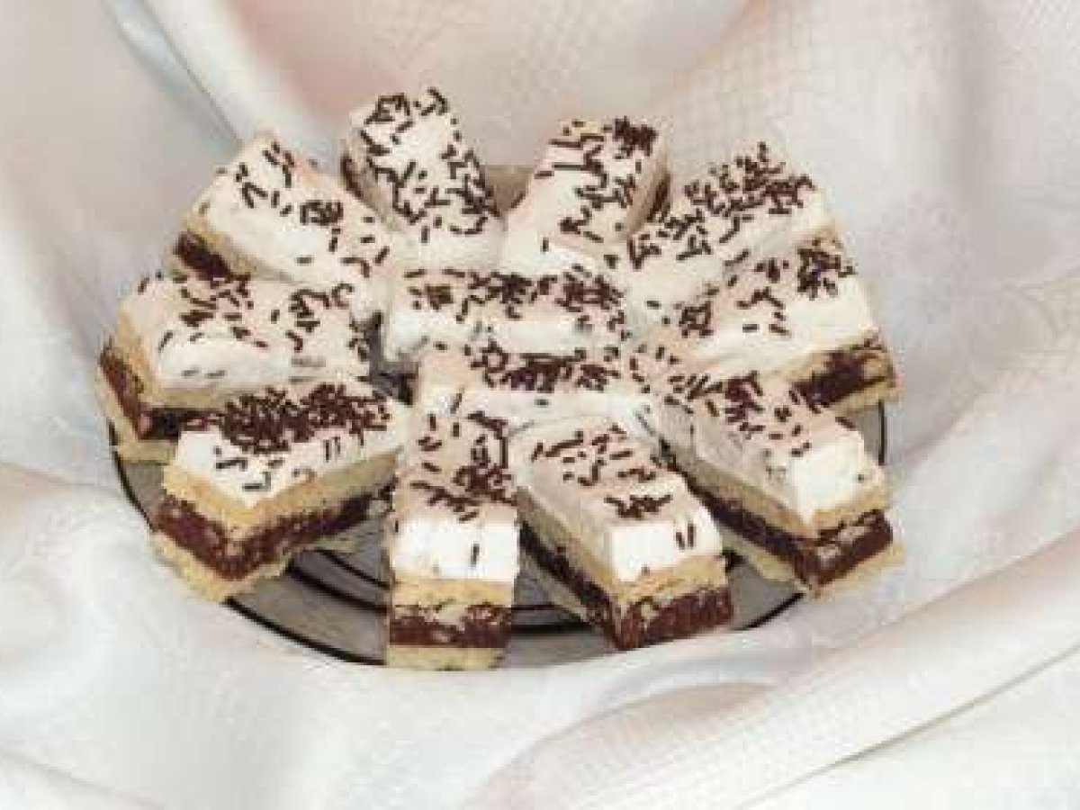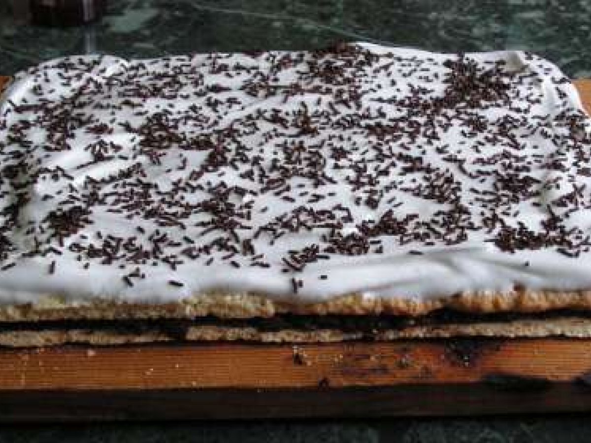 Prajitura PrecedentulUrmătorul AlteleUșor50 min Trimite unui prieten Printează pagina Adresează o întrebare autorului Postează o poză cu rețeta gătită de tine Ingrediente 8 pentru cele 3 blaturi: 500g de faina, 150g de zahar, 200g de margarina, 1 plic praf de copt, galbenusul a 3 oua, smantana. pentru crema: un blat framantat, 150g de unt, 1/2 pahar de lapte, 100g de zahar, 1 plic zahar vanilinat, 2 linguri de cacao, 2 linguri de rom, 2 linguri de gem de macese. pentru glazura: albusul a 3 oua, 150g de zahar. pentru decor: ornament de cacao
