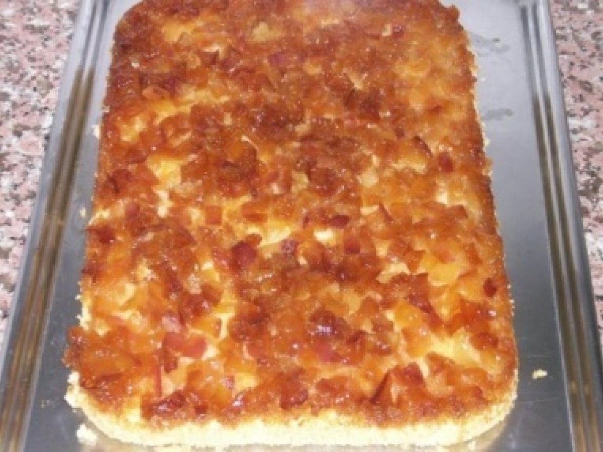 Prajitura intoarsa, cu nectarine PrecedentulUrmătorul AlteleFoarte ușor1 h 40 m Trimite unui prieten Printează pagina Adresează o întrebare autorului Postează o poză cu rețeta gătită de tine Ingrediente 6 150 g zahar(pt caramelizat) 70-80 g unt 750 g nectarine(mere,caise........) Pt pandispan: 5 oua 125 g faina 150 g zahar coaja de lamiie esenta de vanilie 1/2 lingurita praf de copt