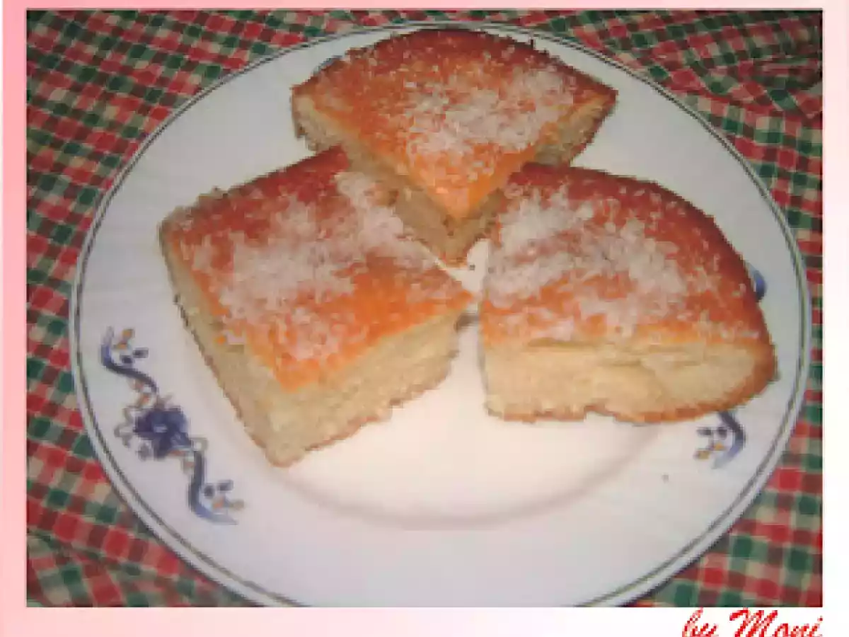 Prajitura turceasca "revani" votează acum PrecedentulUrmătorul AlteleFoarte ușor35 min Trimite unui prieten Printează pagina Adresează o întrebare autorului Postează o poză cu rețeta gătită de tine Ingrediente 4 o cana faina, 1/2 cana gris, jumatate de plic de praf de copt, 2 plicuri zahar vanilat, 2 linguri zahar, 1/2 cana ulei de floarea soarelui, 3 oua, 2 iaurturi Danone Cremosso, cocos Pentru sirop: o cana apa, 10 linguri zahar, zeama de la o jumatate de lamaie.