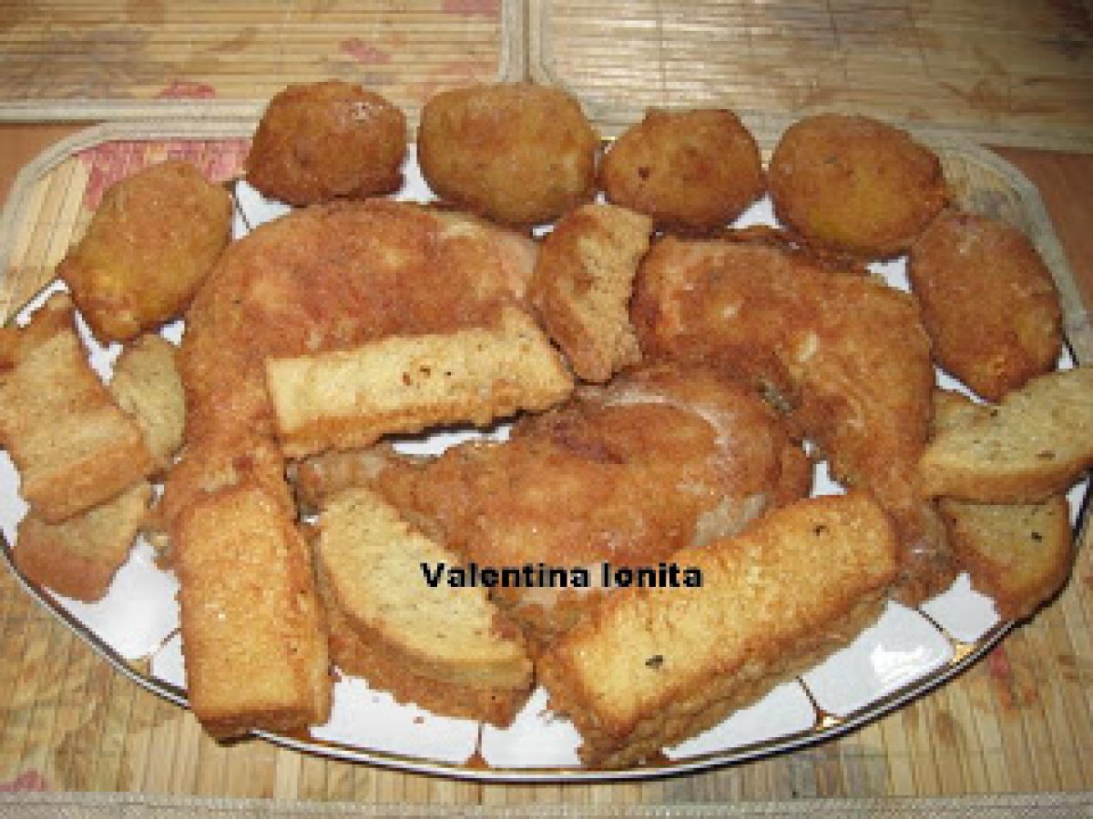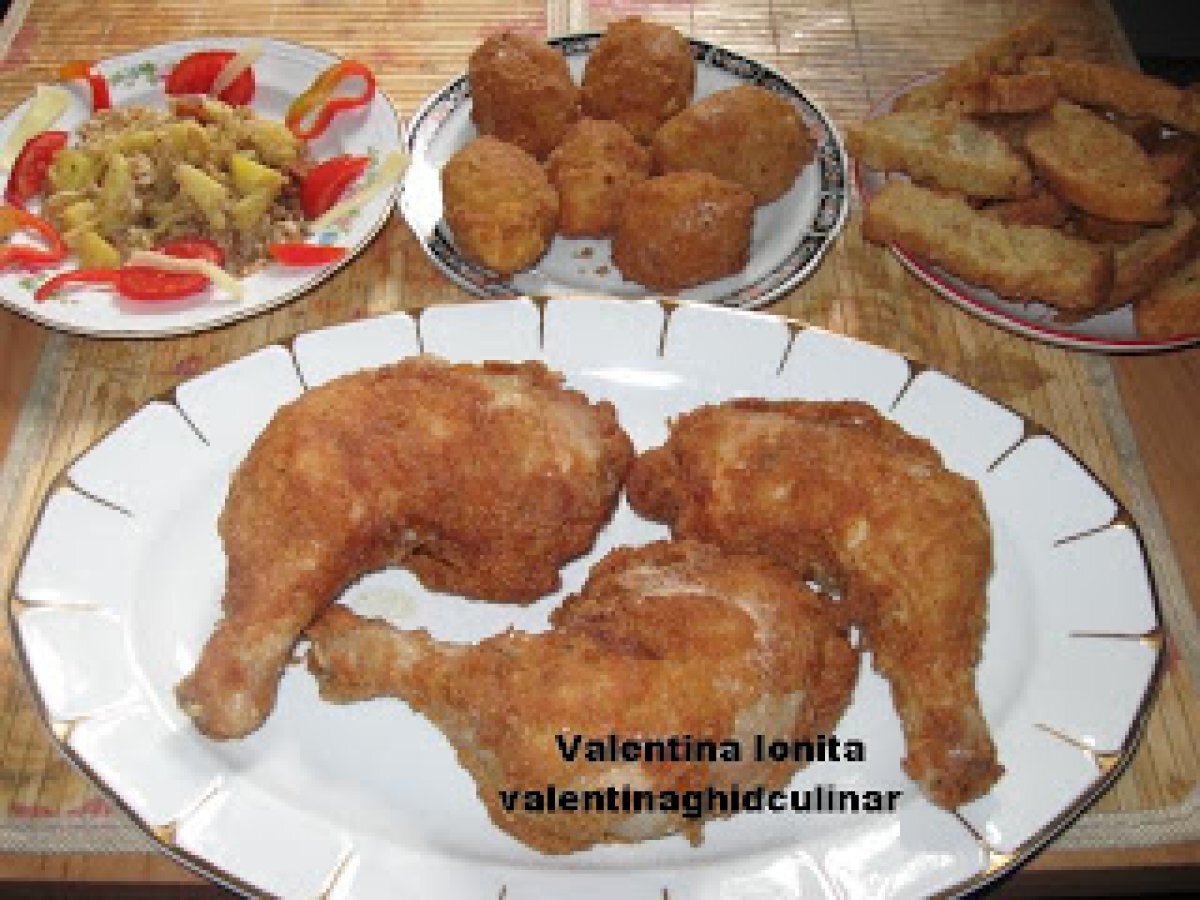 Pulpe de pui pane cu cartofi umpluti pane si friganele PrecedentulUrmătorul AlteleFoarte ușor50 min Trimite unui prieten Printează pagina Adresează o întrebare autorului Postează o poză cu rețeta gătită de tine Ingrediente 6 3 pulpe de pui o ceapa mica un morcov o albitura cateva felii de telina un ardei gras 4- 5 linguri faina 2 linguri pesmet 4 oua sare,piper,cimbru,boia dulce dupa gust 6 cartofi 5 lingurite de branza rasa sau pasata cu furculita o lingura de cascaval ras 3 felii de paine