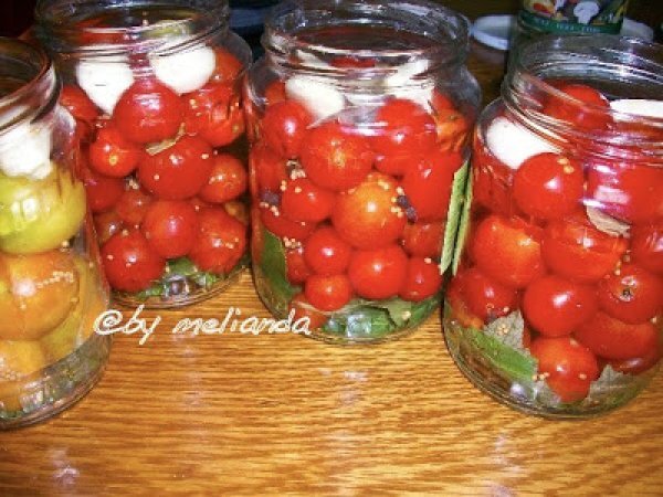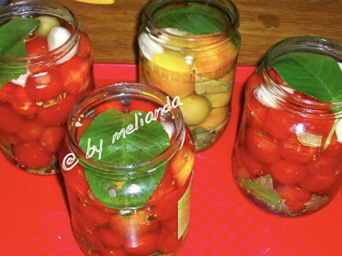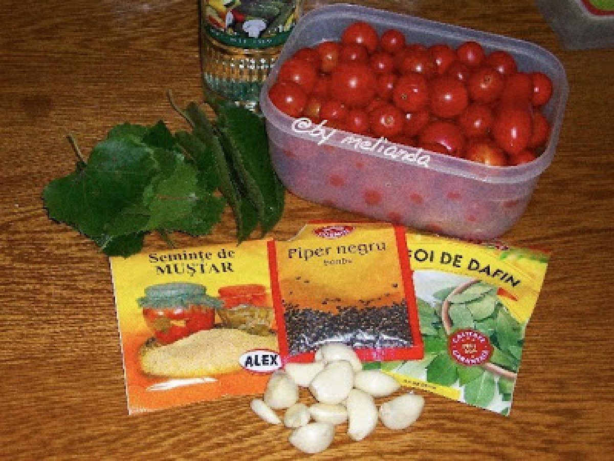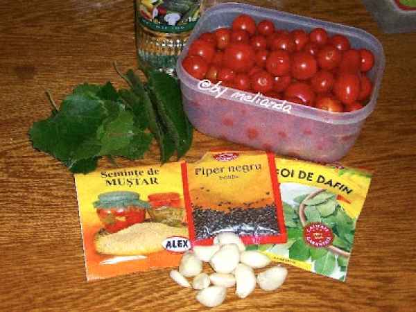 Rosii murate cu usturoi PrecedentulUrmătorul AlteleFoarte ușor30 min Trimite unui prieten Printează pagina Adresează o întrebare autorului Postează o poză cu rețeta gătită de tine Ingrediente 12 2 kg rosii cherry cativa catei de usturoi frunze de visin frunze de vita de vie boabe de piper boabe de mustar foi de dafin otet , sare, apa