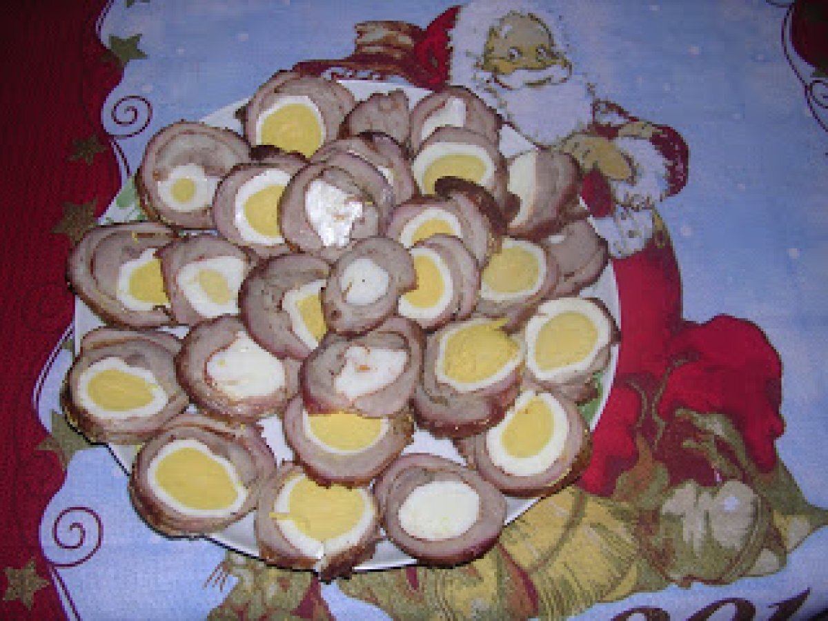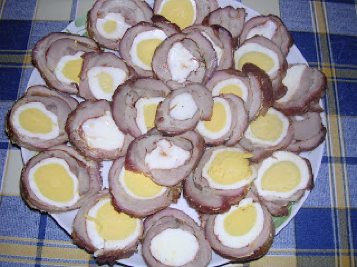 Rulada din carne de porc cu oua PrecedentulUrmătorul AlteleFoarte ușor40 min Trimite unui prieten Printează pagina Adresează o întrebare autorului Postează o poză cu rețeta gătită de tine Ingrediente 8 600 g carne de porc 5 oua sare,piper,boia dulce, gimbir,cimbru 4-5 linguri ulei, 1 ceasca apa, 1 foaie de dafin.