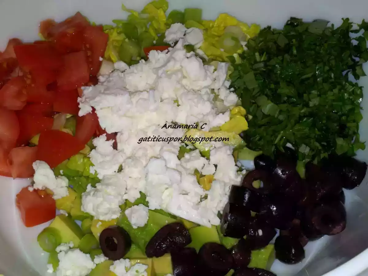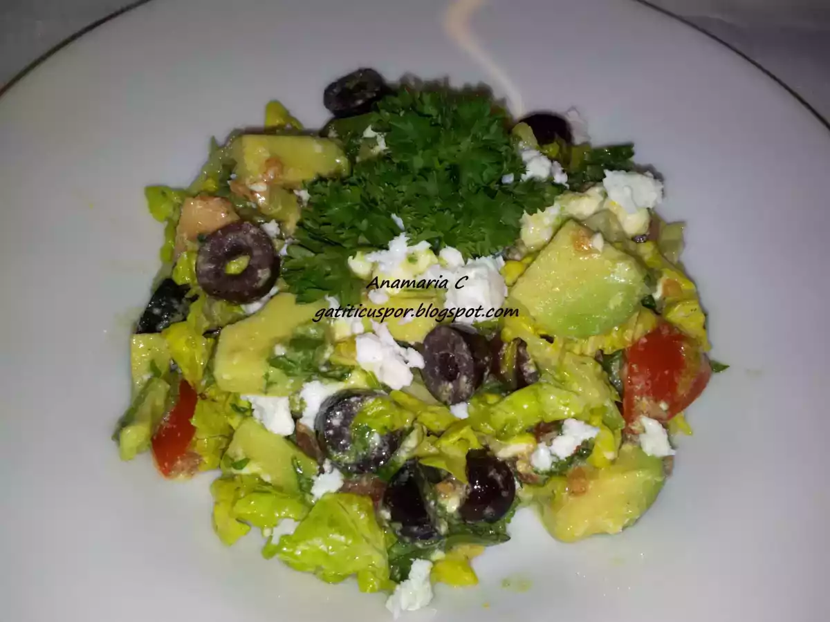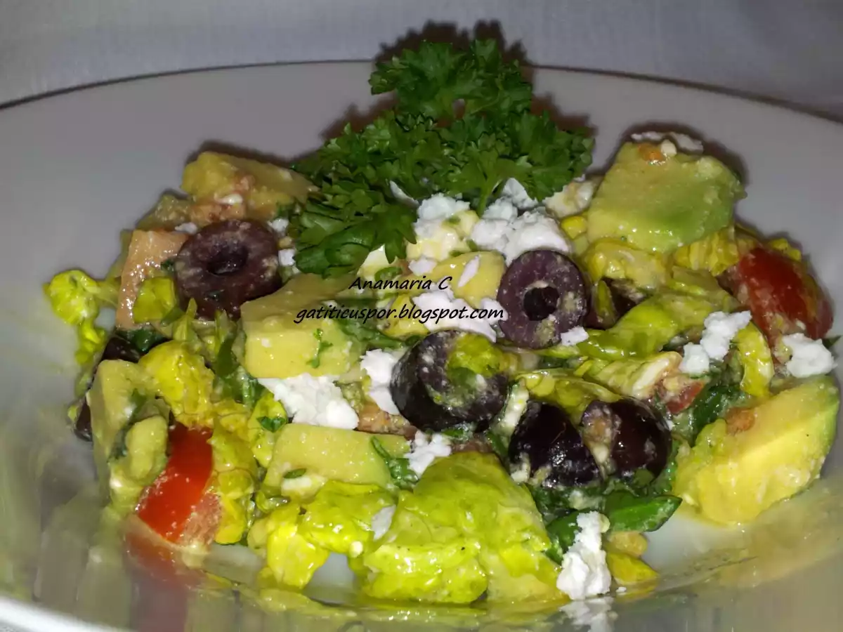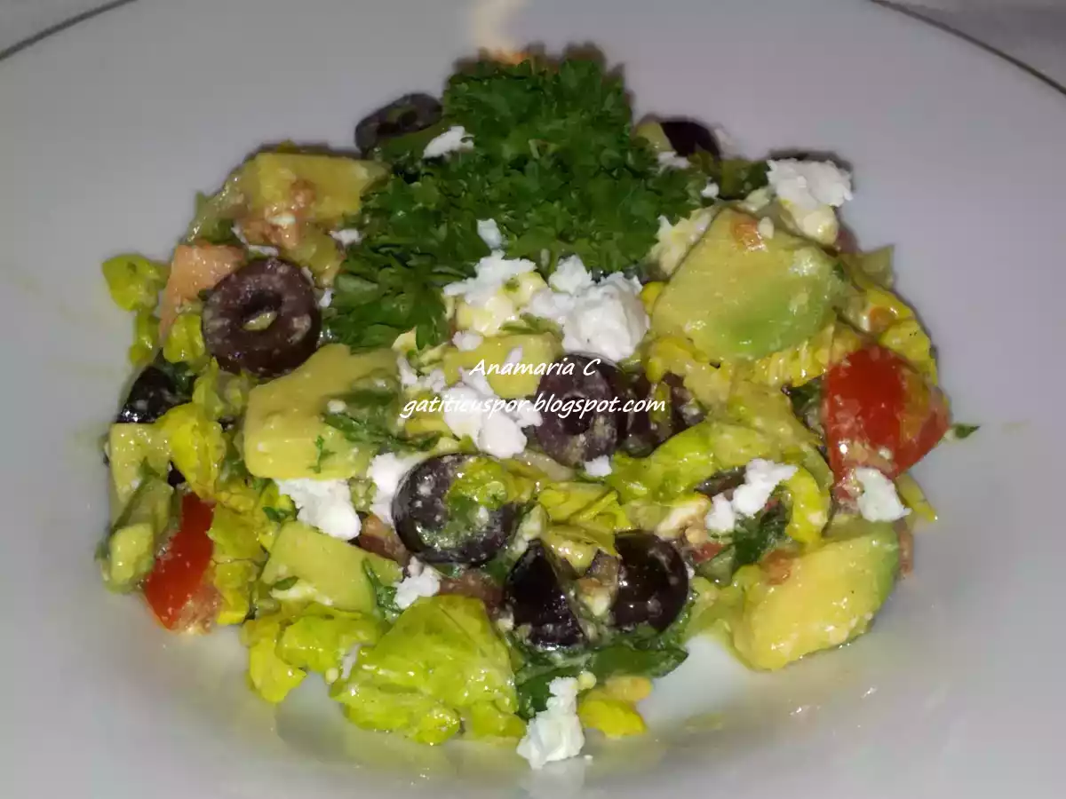 Salata cu avocado PrecedentulUrmătorul AlteleFoarte ușor20 min Trimite unui prieten Printează pagina Adresează o întrebare autorului Postează o poză cu rețeta gătită de tine O salata sanatoasa rapida si hranitoare!!! Ingrediente 1 2 rosii potrivite un avocado 4-5 frunze salata verde 10 masline kalamata 50 g branza feta un fir ceapa verde patrunjel verde dupa gust sare si piper o lingurita mustar dijon 1 lingura ulei de masline sucul unei lamai