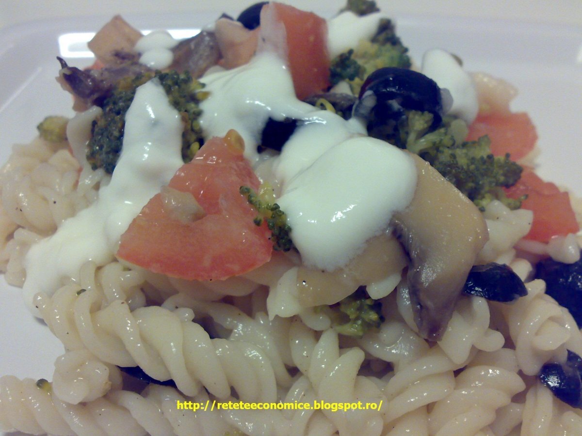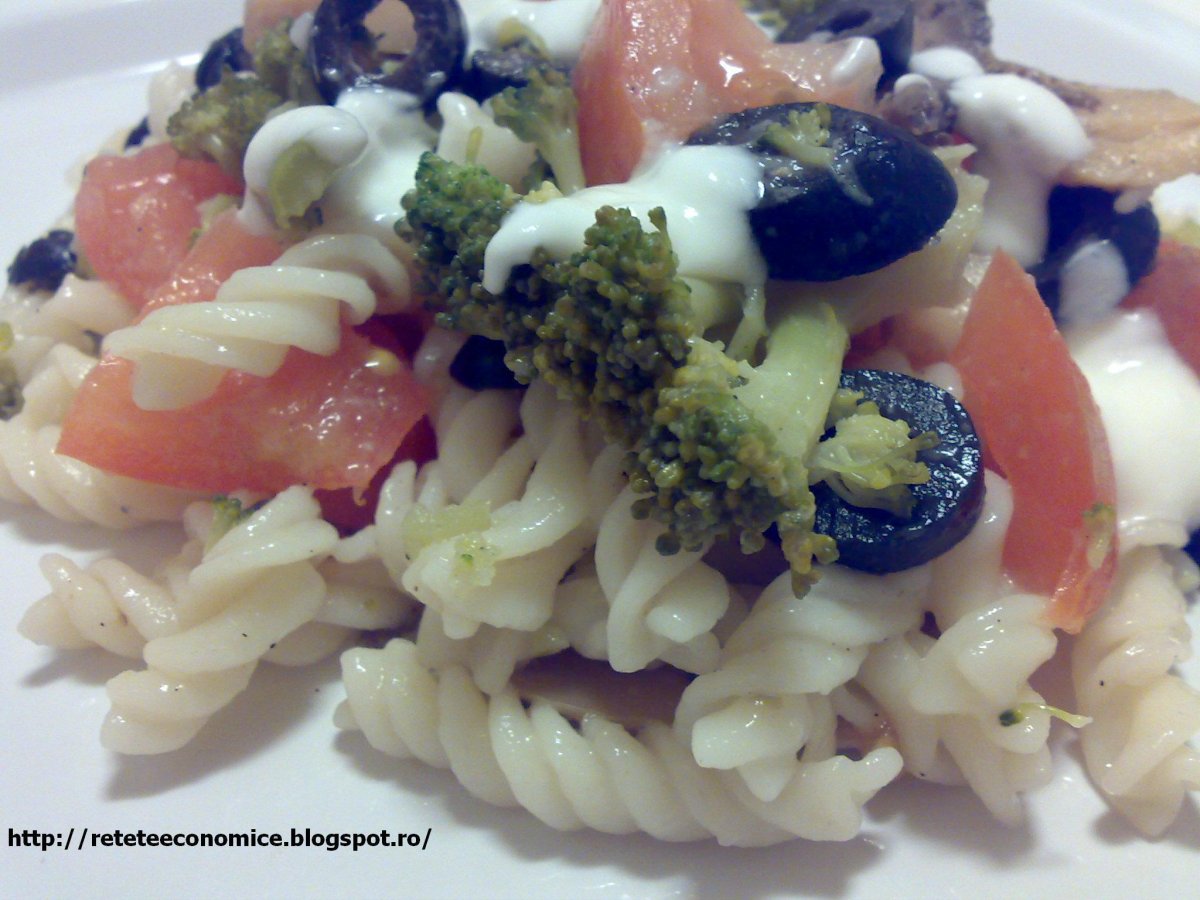 Salata de sezon cu paste PrecedentulUrmătorul AlteleFoarte ușor30 min Trimite unui prieten Printează pagina Adresează o întrebare autorului Postează o poză cu rețeta gătită de tine Foarte rapid si foarte bun Ingrediente 4 450 g paste 3 rosii medii 300 g broccoli 400 g ciuperci (eu am folosit la conserva) 150 g masline fara samburi 100 g iaurt sare piper oregano.