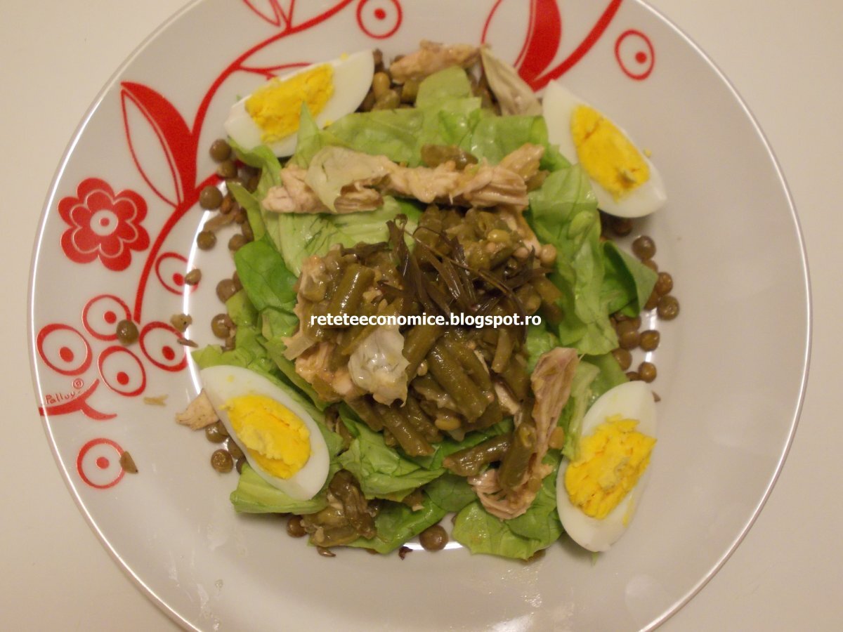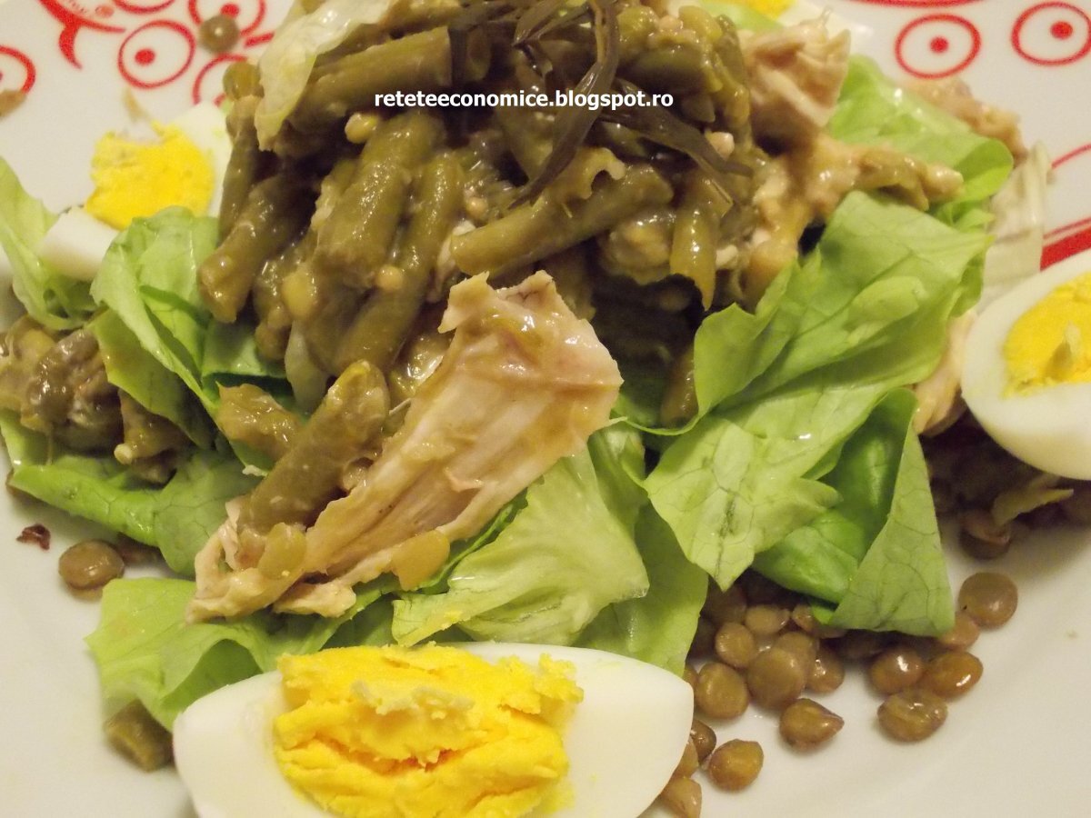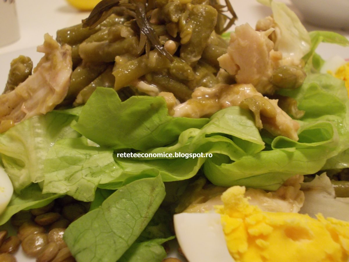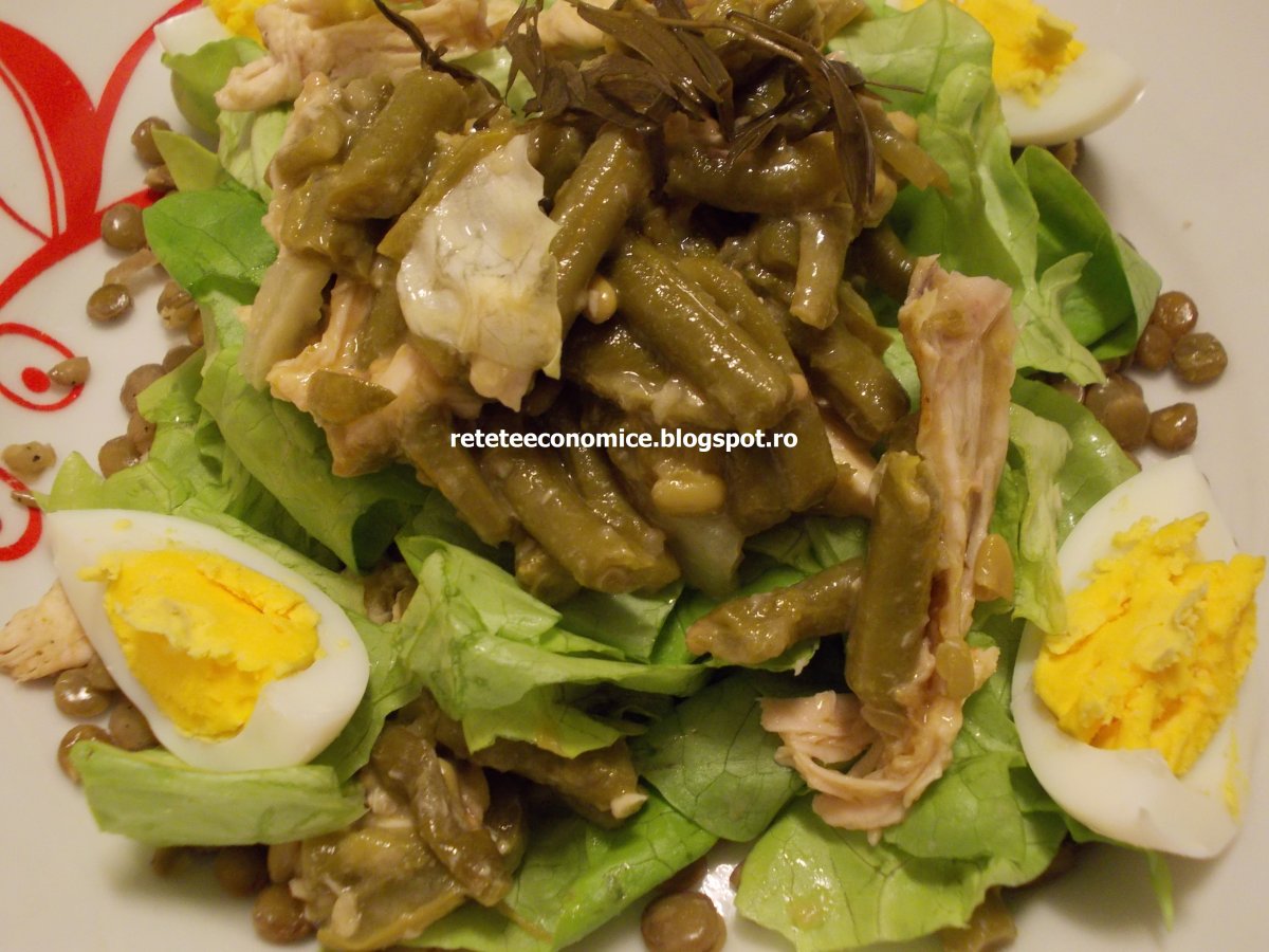 Salata frantuzeasca PrecedentulUrmătorul AlteleFoarte ușor30 min Trimite unui prieten Printează pagina Adresează o întrebare autorului Postează o poză cu rețeta gătită de tine Legume, putin pui si un dressing excelent. Ingrediente 4 300 g linte Un piept de pui mic 3 oua 350 g fasole verde ½ salata verde 2 linguri mustar 5 bucatele usturoi O lingura otet balsamic O lingurita miere Cateva frunzulite rozmarin Cateva frunzulite tarhon Ulei de masline Sare