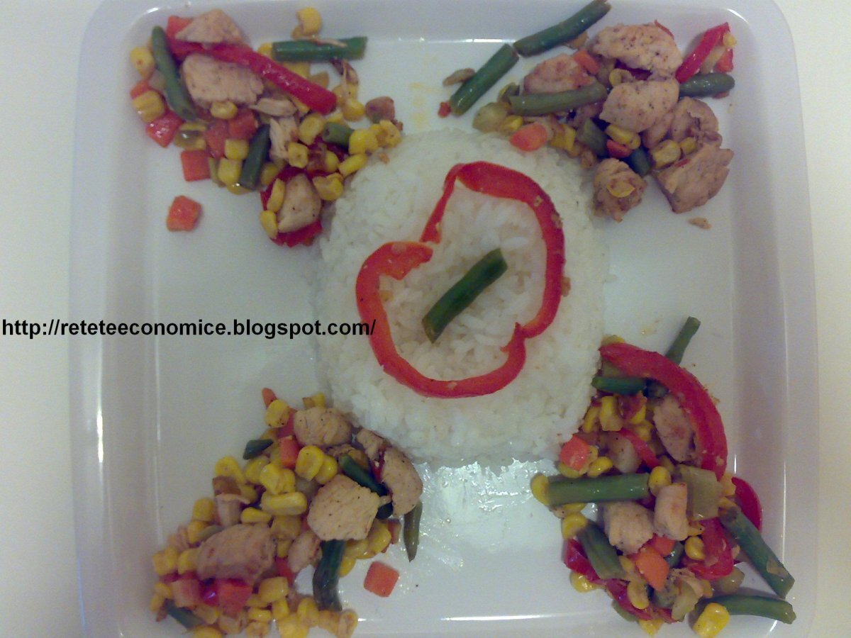 Salata mexicana cu orez PrecedentulUrmătorul AlteleFoarte ușor45 min Trimite unui prieten Printează pagina Adresează o întrebare autorului Postează o poză cu rețeta gătită de tine O reteta delicioasa cu buget redus Ingrediente 4 1 piept de pui mediu 400 g amestec legume congelate 2 ardei grasi rosii 300 g orez sare piper.