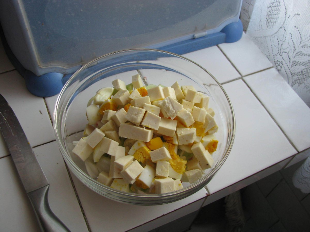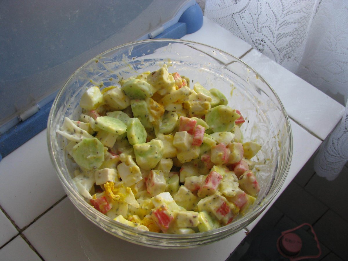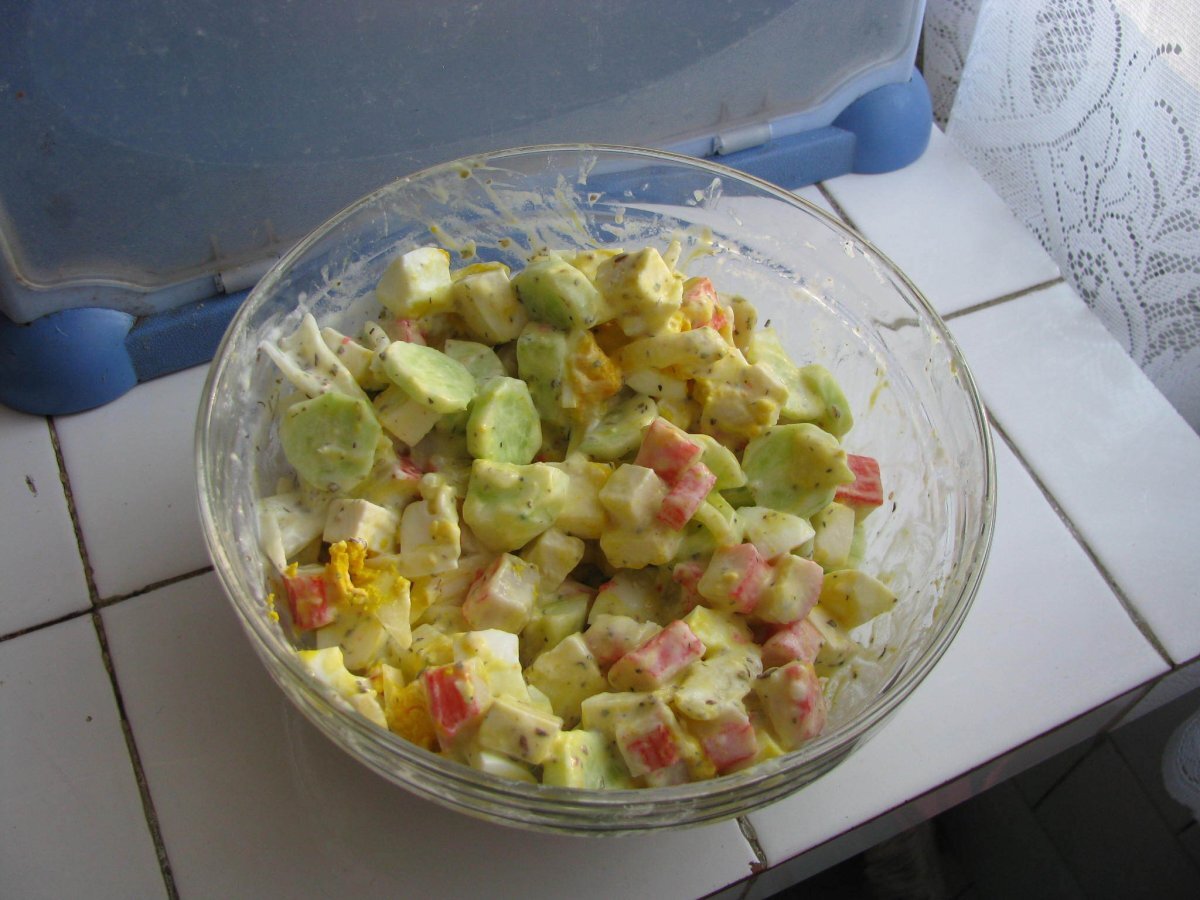 Salata surimi cu iaurt si ou PrecedentulUrmătorul AlteleUșor20 min Trimite unui prieten Printează pagina Adresează o întrebare autorului Postează o poză cu rețeta gătită de tine Ingrediente 4 surimi - 250 grame ceapa - 1 buc mica castraveti cornichon - 2 buc oua fierte - 2 buc branza oaie/vaca/capra - 150 grame iaurt - 1 cana + cimbru, oregano, marar, sare daca e nevoie, etc
