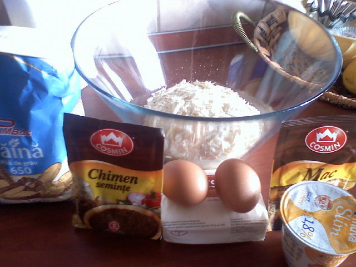 Saratele PrecedentulUrmătorul AlteleFoarte ușor1 h 15 m Trimite unui prieten Printează pagina Adresează o întrebare autorului Postează o poză cu rețeta gătită de tine Ingrediente 6 branza veche si sarata de oaie (am avut cam 350g) 1 pachet margarina/unt 2 oua 1 iaurt mic (merge si samantana sau un iaurt mai gras) seminte de chimen si mac cascaval ras faina cata intra (cam 500g) pana devine un aluat mai tare (dar nu prea tare) 1 ou batut