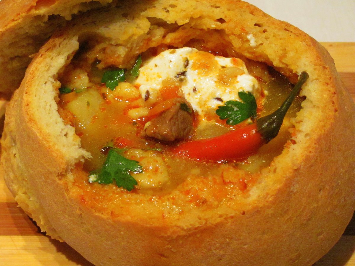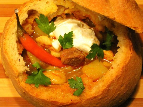 Supa gulas PrecedentulUrmătorul AlteleUșor2 h 30 m Trimite unui prieten Printează pagina Adresează o întrebare autorului Postează o poză cu rețeta gătită de tine Ingrediente 8 800 gr pulpa de vita 2 morcovi 1 ceapa alba 1 ceapa rosie 1 ardei rosu 1 ardei galben 1 ardei iute 3 catei usturoi 1 rosie 3-4 cartofi 2 linguri pasta gulas 1 lingurita boia dulce 1 lingurita chimen seminte [Image]1 lingurita chimen macinat 1 lingura delikat 3 foi de dafin 50 ml ulei patrunjel verde sare piper pt galuste: 1 ou 2 linguri cu varf faina sare