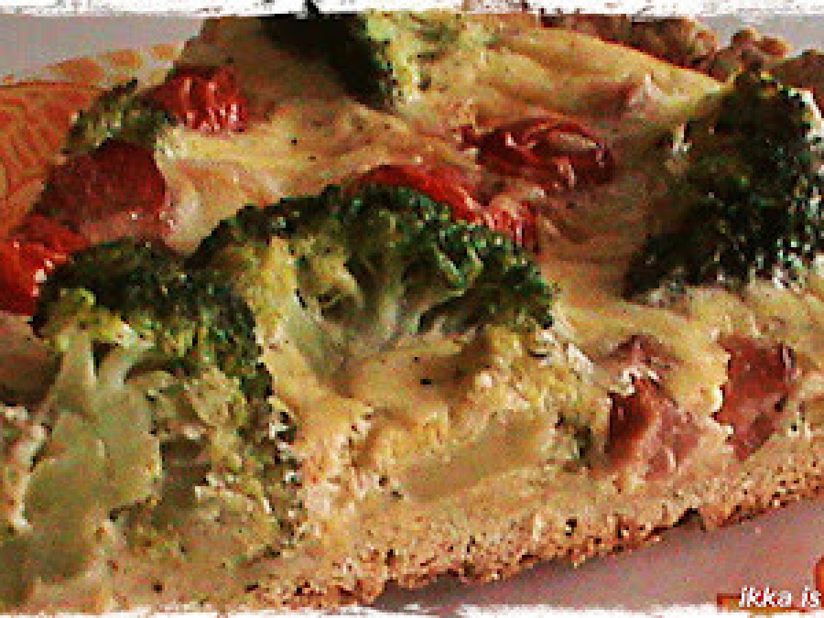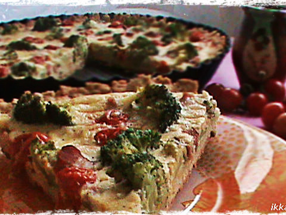 Tarta cu legume si bacon PrecedentulUrmătorul AlteleFoarte ușor1 h 25 m Trimite unui prieten Printează pagina Adresează o întrebare autorului Postează o poză cu rețeta gătită de tine O tarta usor de preparat, dar deosebit de gustoasa si savuroasa! Ingrediente 4 Pentru blat: 250 g faina 125 g branza de vaci 5 linguri ulei 1 ou 1 praf de sare 1/2 lingurita praf de copt Umplutura: 250 g brocoli 100 g bacon feliat 250 g rosii cherry 1 ou; 1 galbenus 100 g cascaval ras 250 ml smantana sare, piper