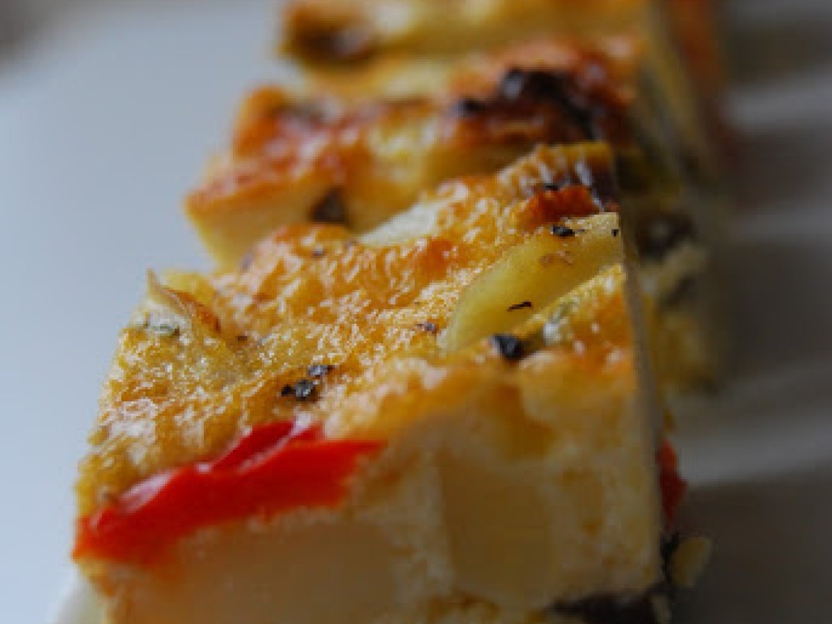 Tortilla cu branza si ceapa verde PrecedentulUrmătorul AlteleFoarte ușor50 min Trimite unui prieten Printează pagina Adresează o întrebare autorului Postează o poză cu rețeta gătită de tine Ingrediente 6 Ulei maslineUn usturoi zdrobit 4 cepe verzi taiate fin Un ardei verde gras taiat cuburi Un ardei rosu 175 g cartofi fierti si taiati cuburi 5 oua 100 ml sour cream 175 g cheddar ras 3 linguri chive