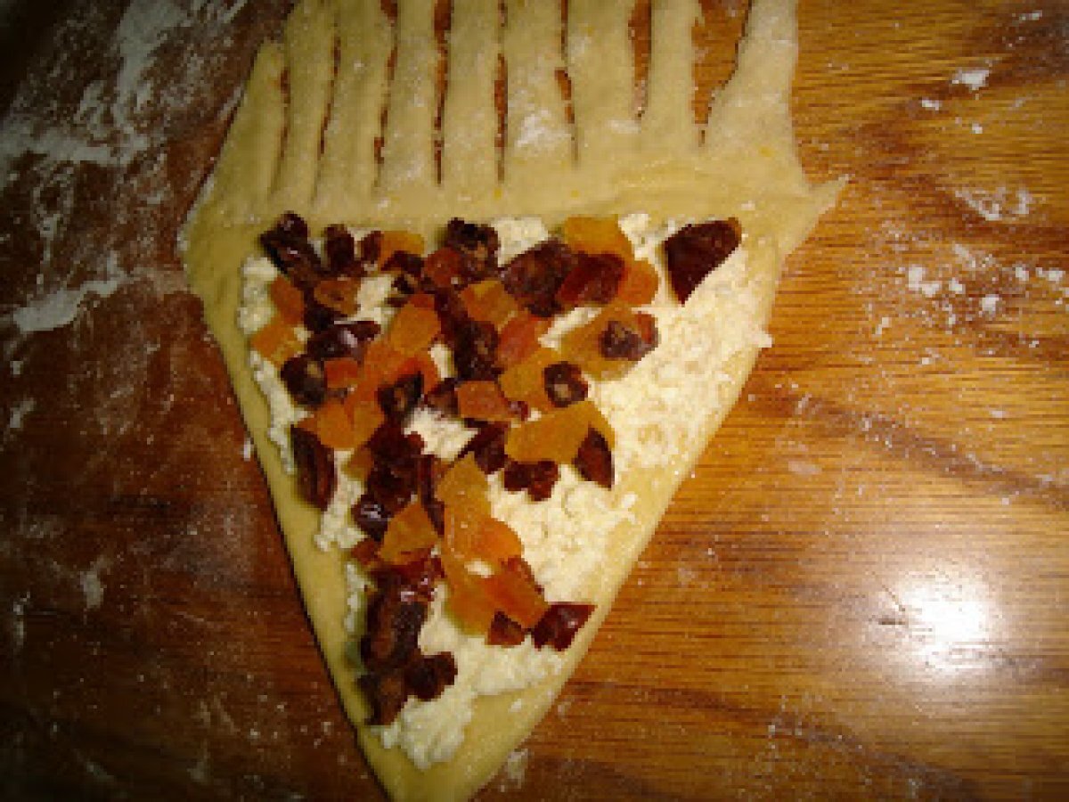 Trigoane cu branza dulce si stafide PrecedentulUrmătorul AlteleFoarte ușor35 min Trimite unui prieten Printează pagina Adresează o întrebare autorului Postează o poză cu rețeta gătită de tine Ingrediente 6 500 g de fin, 30 g drojdie, 25 g zahr, 5 ou 150-200 ml lapte, 50 ml ulei, 1 lingur coaja de lmâie, 1 lingura coaja de portocala, 500 g brânz proaspt de vaci, 50 g stafide, sare.