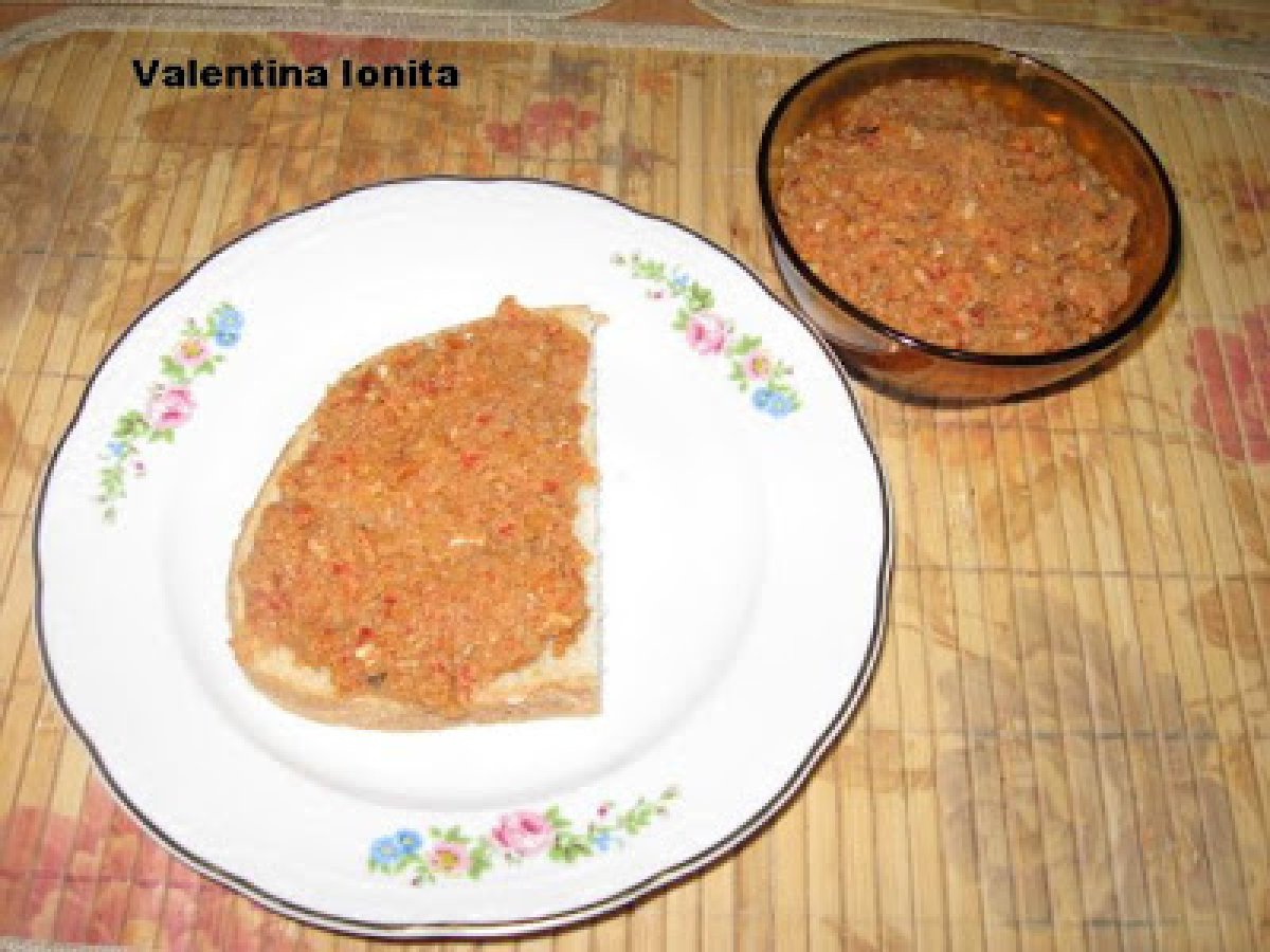 Zacusca de peste (reteta originala preluata de la manastirea varatec) PrecedentulUrmătorul AlteleFoarte ușor35 min Trimite unui prieten Printează pagina Adresează o întrebare autorului Postează o poză cu rețeta gătită de tine Ingrediente 10 4 kg de peste 4 kg ceapa curatata si taiata pestisori 1 kg morcov 1 l ulei 1 kg ardei capia sau gogosari copti 3-4 linguri bulion sau pasta de tomate sare,piper dupa gust 4-5 linguri zahar