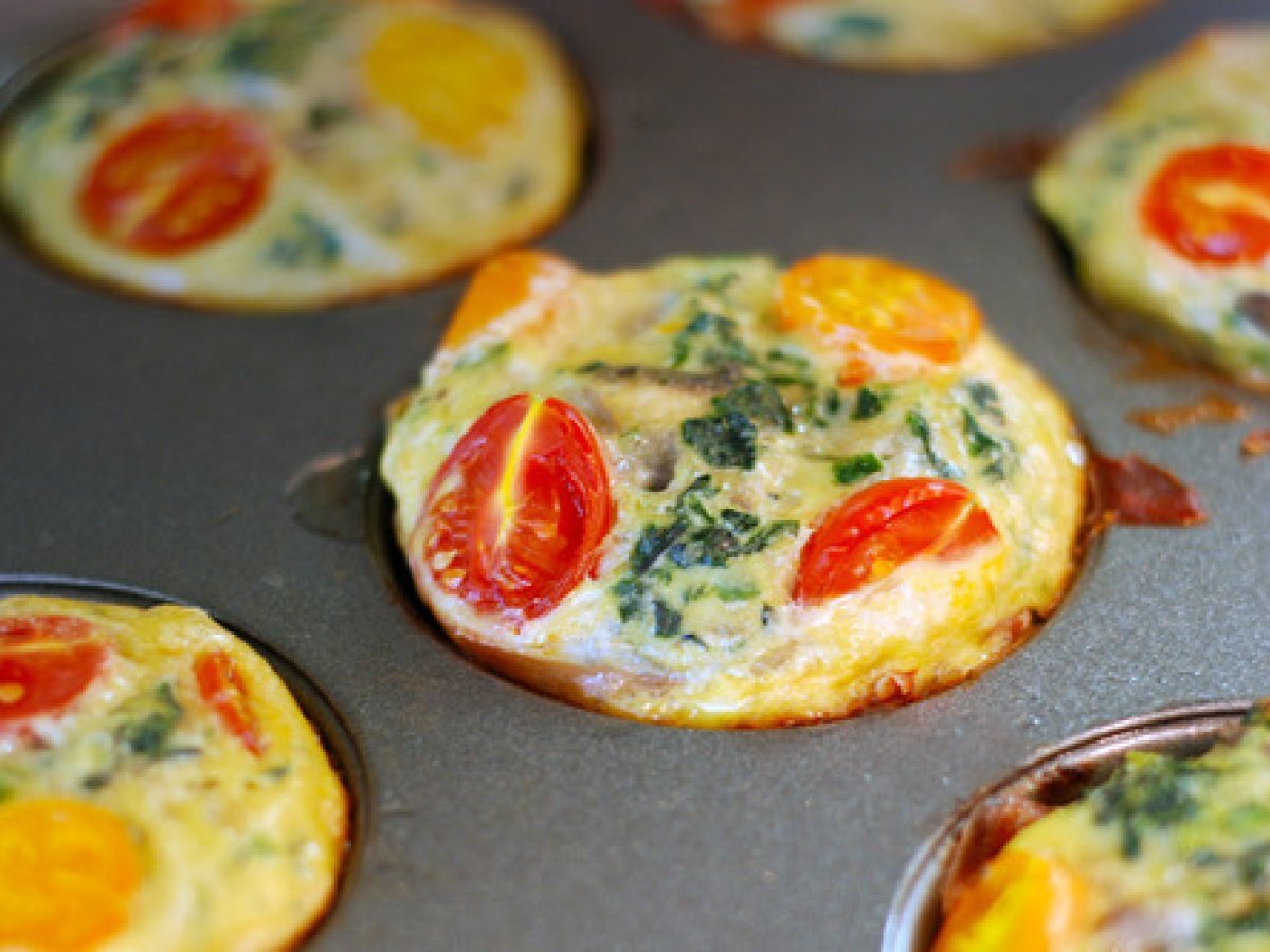 Briose cu prosciutto PrecedentulUrmătorul AntreuriUșor40 min Trimite unui prieten Printează pagina Adresează o întrebare autorului Postează o poză cu rețeta gătită de tine Prosciutto, spanac, ciuperci Ingrediente 6 4 linguri ulei 1 ceapa mica tocata marunt 3 catei de usturoi pisati 250 grame ciuperci tocate marunt 250 grame spanac congelat pe care il decongelati si il stoarceti de apa 150 grame prosciutto 8 oua 60 ml iaurt simplu 2 linguri faina 12 rosii cherry taiate pe jumatate Sare