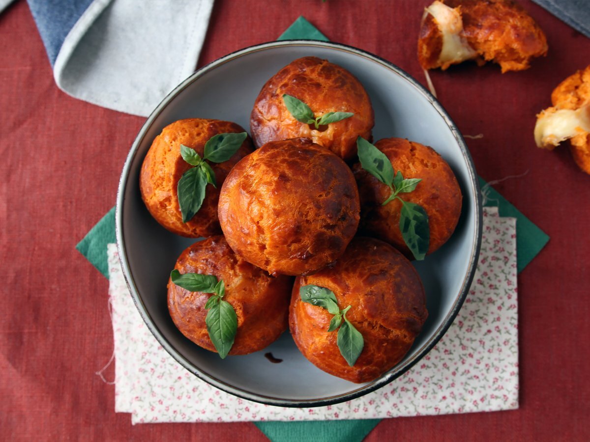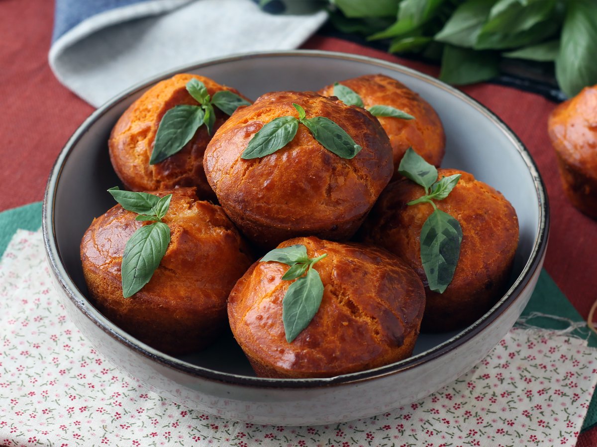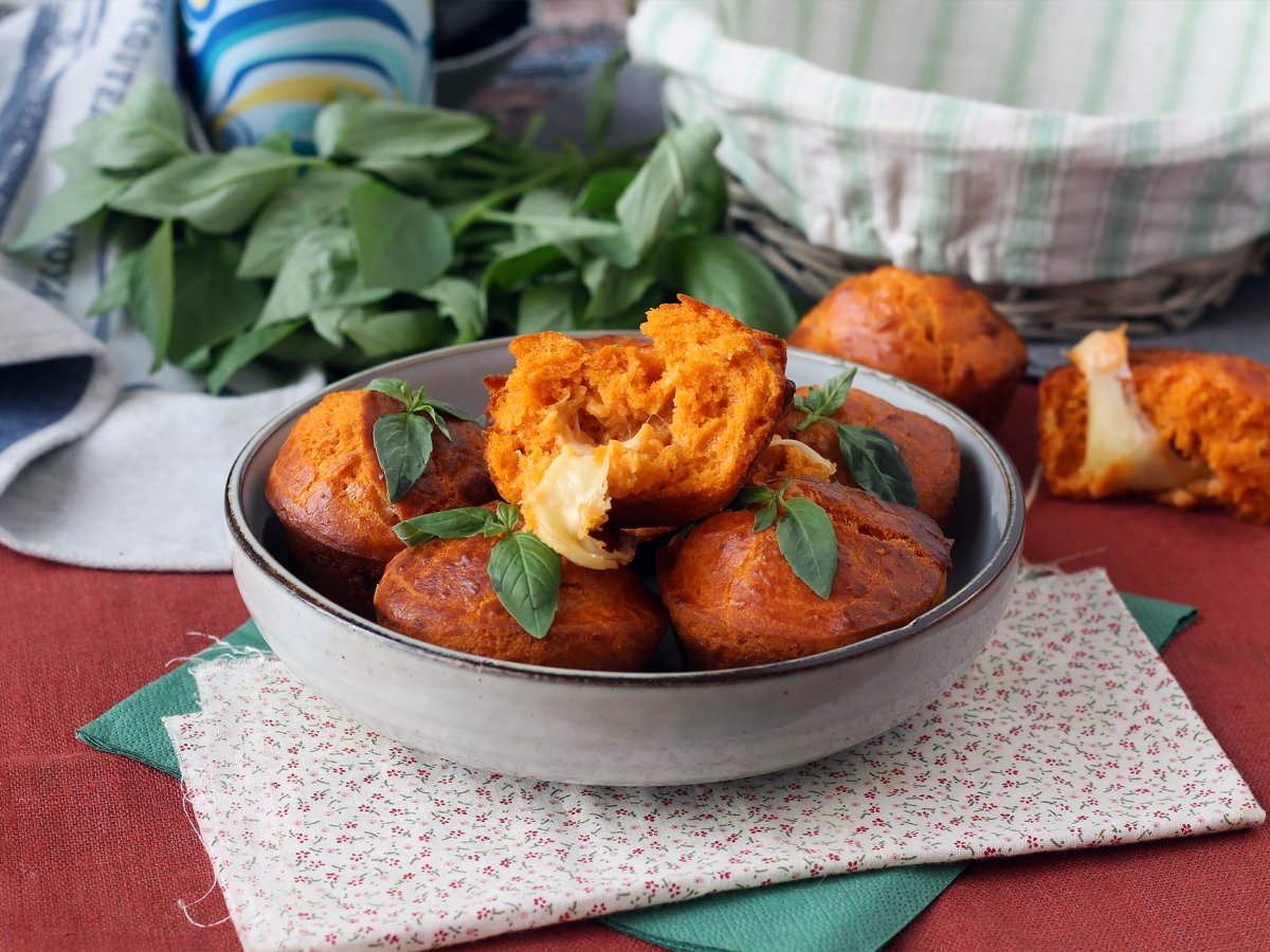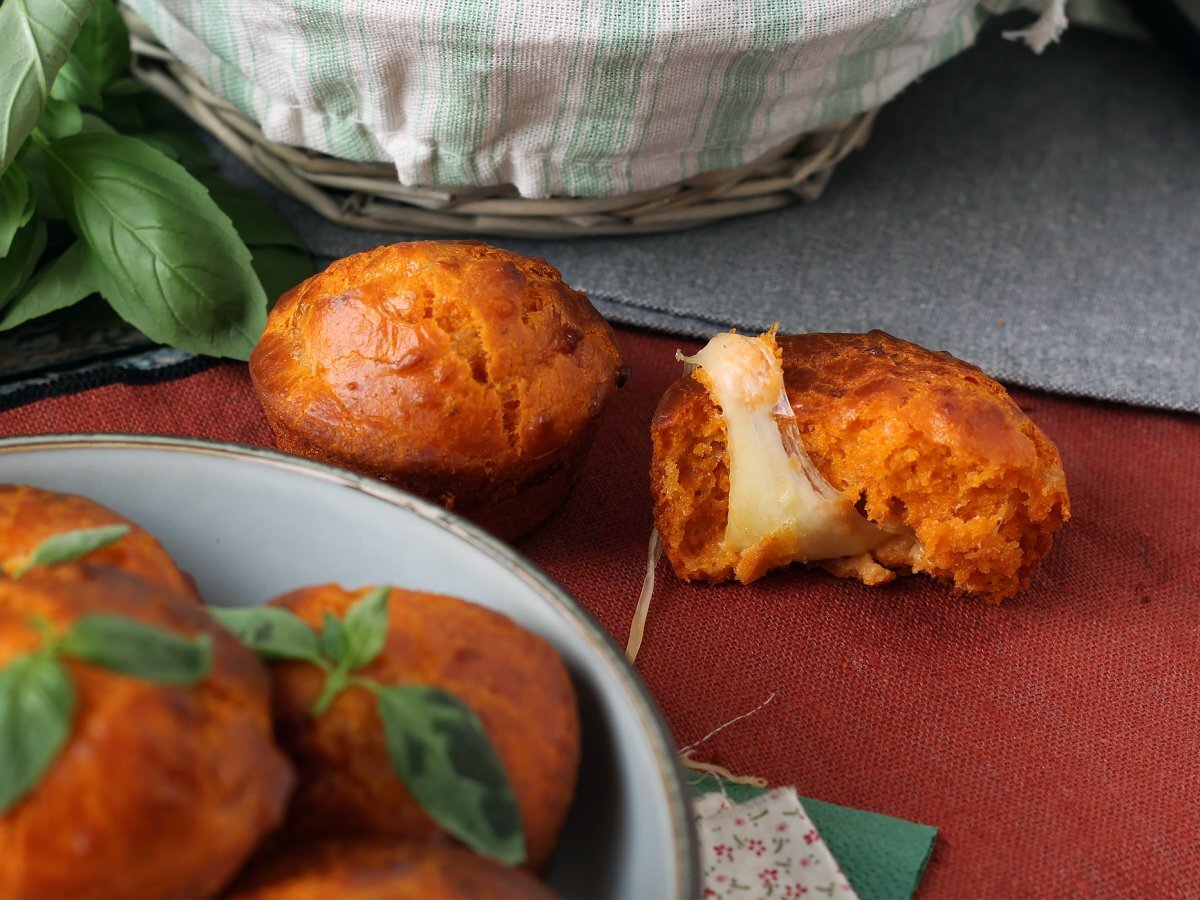 Brioșe cu roșii si miez moale de mozzarella
