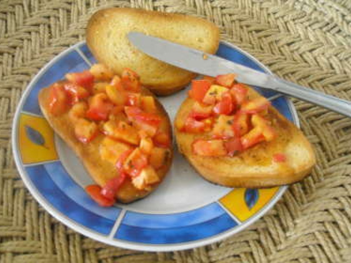 Bruschete cu rosii si busuioc PrecedentulUrmătorul AntreuriFoarte ușor17 min Trimite unui prieten Printează pagina Adresează o întrebare autorului Postează o poză cu rețeta gătită de tine Ingrediente 1 Trei felii de paine Rosii Ulei de masline Busuioc Usturoi