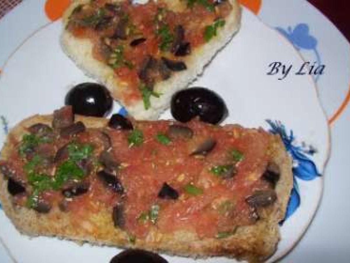 Bruschete PrecedentulUrmătorul AntreuriFoarte ușor10 min Trimite unui prieten Printează pagina Adresează o întrebare autorului Postează o poză cu rețeta gătită de tine Ingrediente 2 4 felii de paine prajita 1 rosie 4 -5 masline, 2 catei de usturoi, ulei de masline patrunjel rozmarin