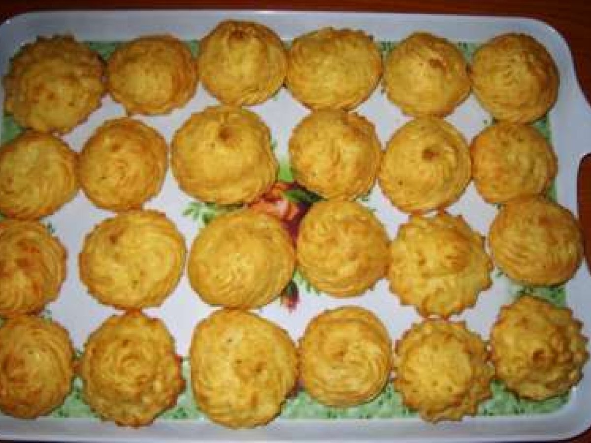 Cartofi duchesse AntreuriUșor1 h 30 m Trimite unui prieten Printează pagina Adresează o întrebare autorului Postează o poză cu rețeta gătită de tine Ingrediente 8 INGREDIENTE: * 500 gr cartofi * 50 gr parmezan ras * 2 oua * 50 gr unt * sare,piper