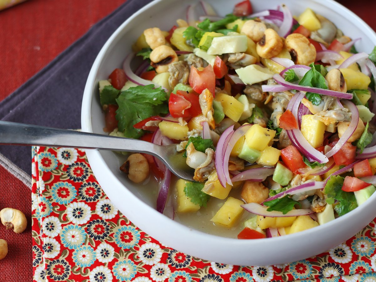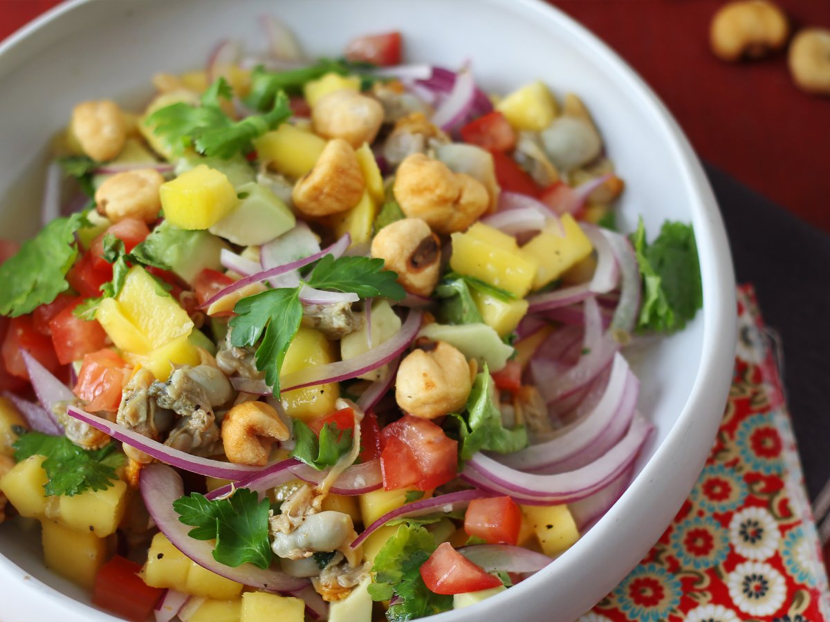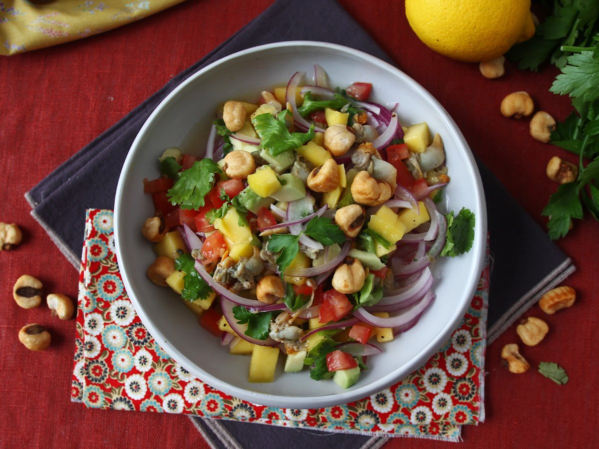 Ceviche este un preparat tradițional peruvian în care peștele crud, marinat în suc de lime sau lămâie, este adevăratul protagonist. La Petitchef, am realizat o versiune rapidă, folosind o conservă de scoici, cu un rezultat cu adevărat surprinzător. O explozie de aromă și culoare care combină cele mai bune fructe de mare cu atingerile dulci ale mango și avocado. Perfectă ca aperitiv ușor sau pentru a vă surprinde oaspeții la o masă specială, aproape fără efort.