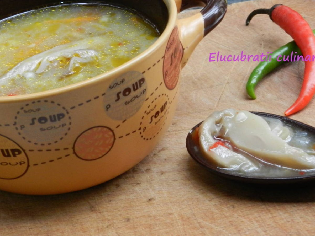 Ciorbă falsă de burtă - rețetă de post PrecedentulUrmătorul AntreuriFoarte ușor40 min Trimite unui prieten Printează pagina Adresează o întrebare autorului Postează o poză cu rețeta gătită de tine Foarte buna in timpul postului Ingrediente 4 500 g ciuperci pleurotus, 1 ceapă mare, 2 morcovi mari, 2-3 gogoșari în oțet, 1 lingură amidon/făină, 2 linguri ulei, sare, oțet, usturoi, ardei iute,