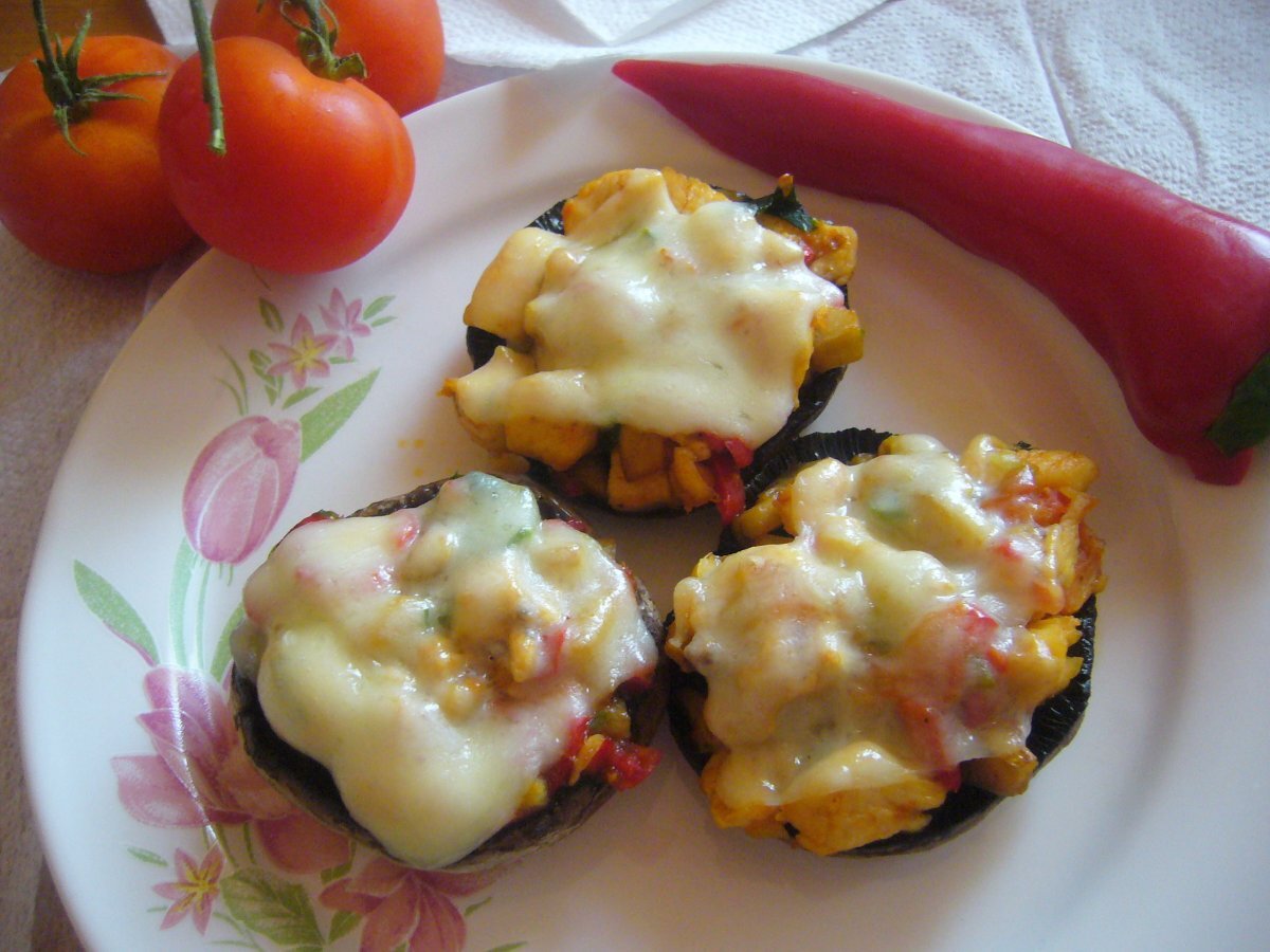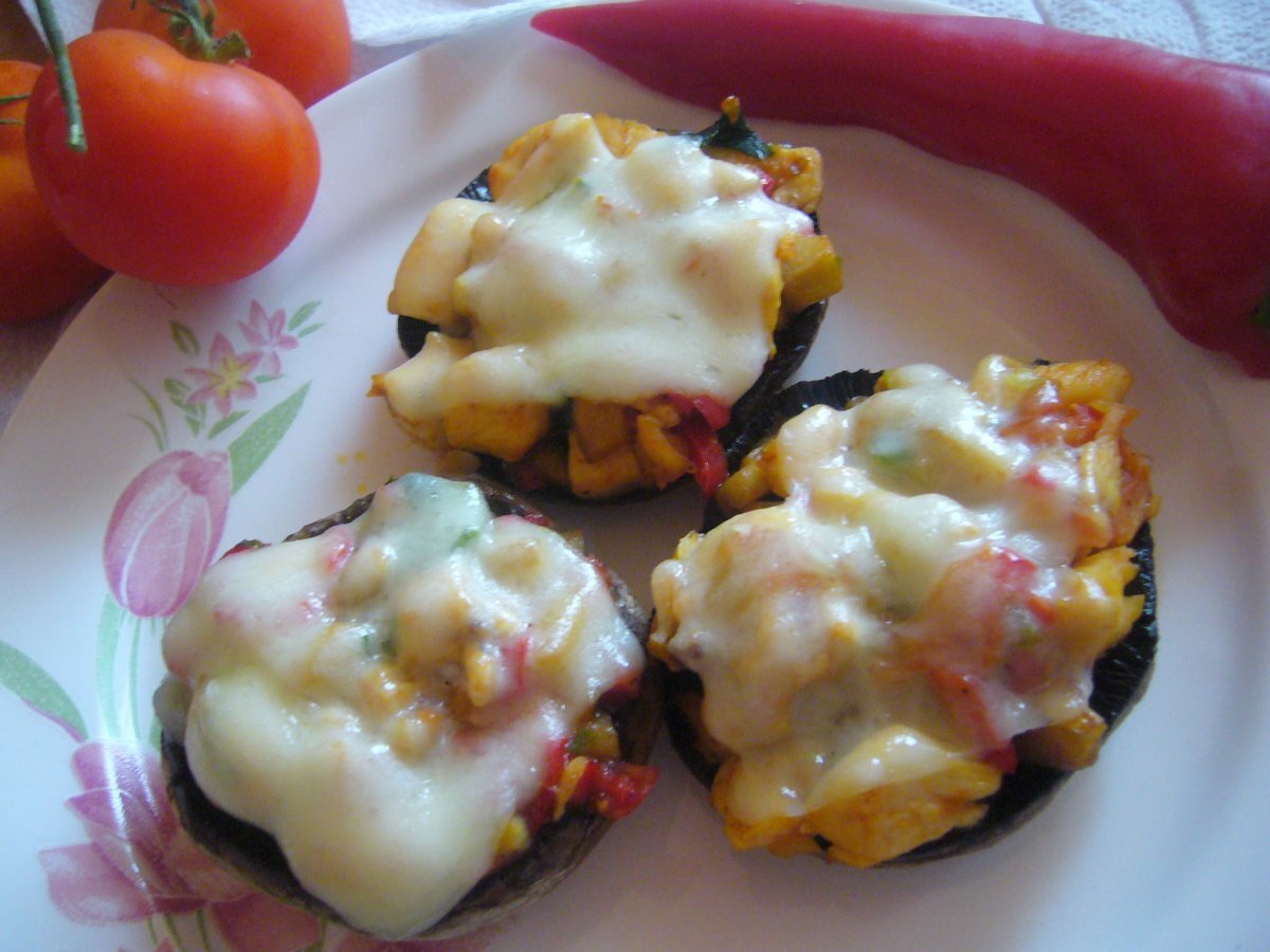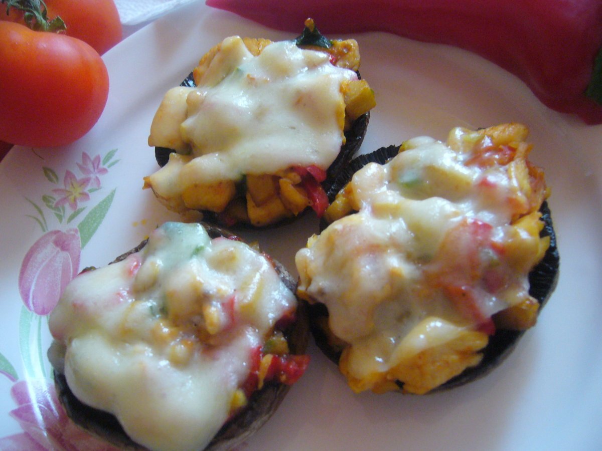 Ciuperci umplute cu piept de pui PrecedentulUrmătorul AntreuriFoarte ușor50 min Trimite unui prieten Printează pagina Adresează o întrebare autorului Postează o poză cu rețeta gătită de tine Ingrediente 4 Pentru ingrediente avem nevoie de : ciuperci, 200 gr piept de pui, 1 ceapa verde, 1/2 ardei capia rosu, 1 rosie, sare, piper, boia de ardei, ulei, cascaval.