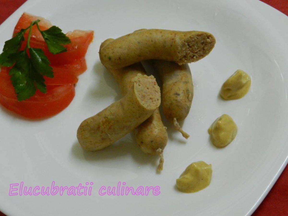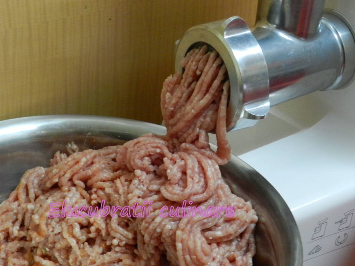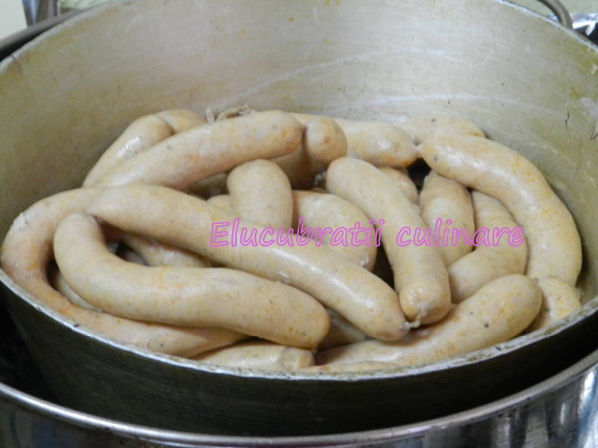 Crenvurști de casă PrecedentulUrmătorul AntreuriDificil2 h 5 m Trimite unui prieten Printează pagina Adresează o întrebare autorului Postează o poză cu rețeta gătită de tine Ingrediente 8 750 g pulpe dezosate de pui, 250 g carne de porc cu slănină, 2 căței de usturoi, 1,5 linguriță semințe coriandru, 1 linguriță semințe muștar, 1,5 linguriță boia dulce, 1 linguriță piper, 1/2 linguriță nucșoară, 1 linguriță măghiran, 2 lingurițe zahăr, 1 linguriță sare, 300 ml apă, 5 m mațe oaie.