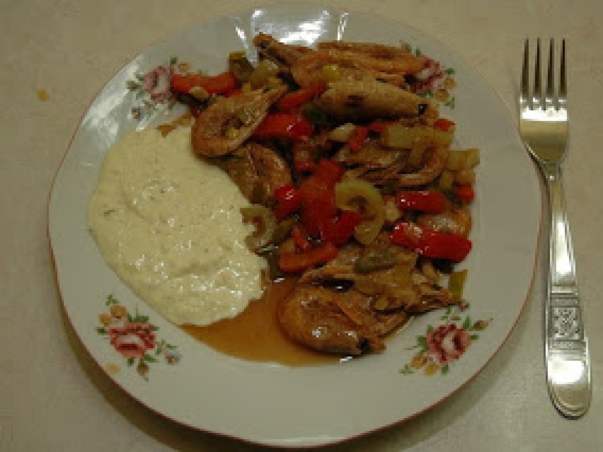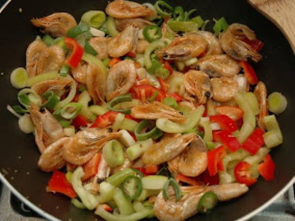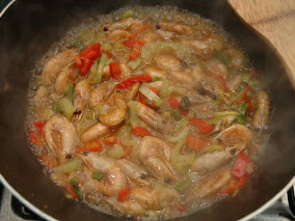 Creveti la wok PrecedentulUrmătorul AntreuriFoarte ușor30 min Trimite unui prieten Printează pagina Adresează o întrebare autorului Postează o poză cu rețeta gătită de tine Ingrediente 2 creveti ghimbir un praz vreo 3 cepe verzi usturoi ardei iute lamaie suc de ananas ardei verde si ardei rosu plus niste sare piper