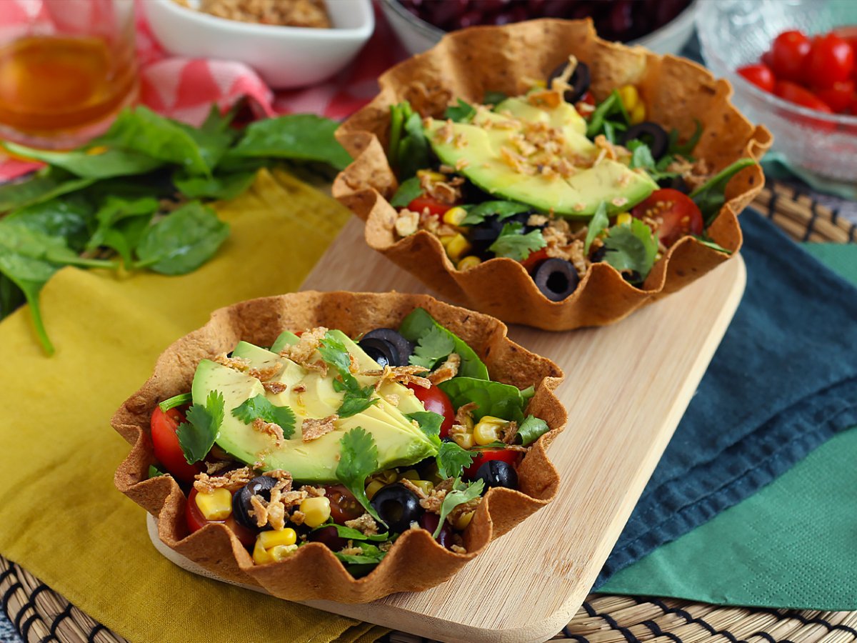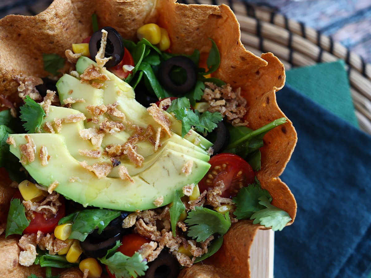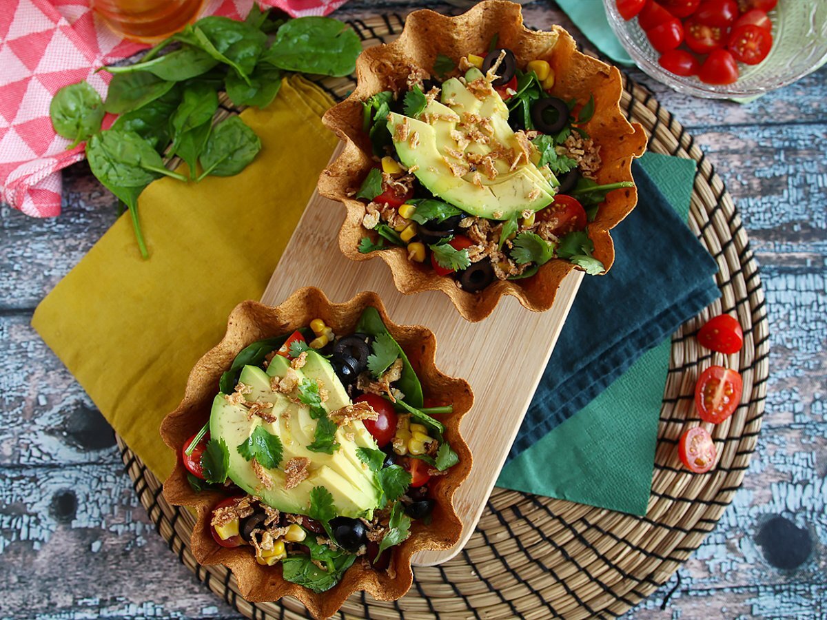 Ce zici să transformăm tortillas noastre de porumb într-un castron pentru a servi o salată mixtă? O matriță de tip fagure, o scurta vizita in cuptor și gata ;-) Vă explicăm mai jos cum am procedat ↓ În rest, trebuie doar să combinați ingredientele la alegere ;-)