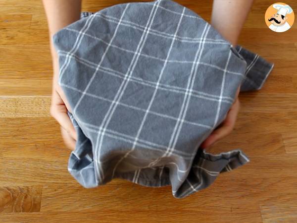 Formati o minge din aluat si acoperiti-o cu un prosop curat. Lasati sa stea la temperatura camerei timp de 1 ora.