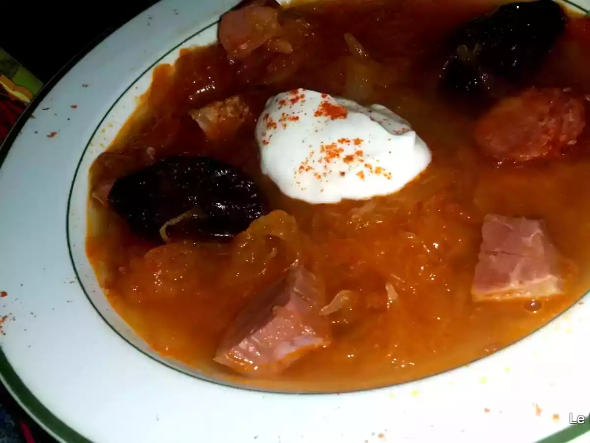 Este o reteta de supa cu varza murata, carnati afumati si prune uscate. servita de obicei la masa de Craciun.
