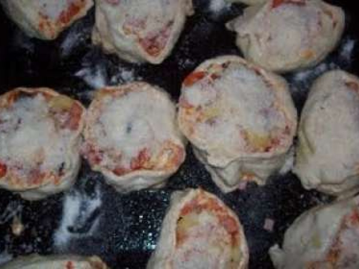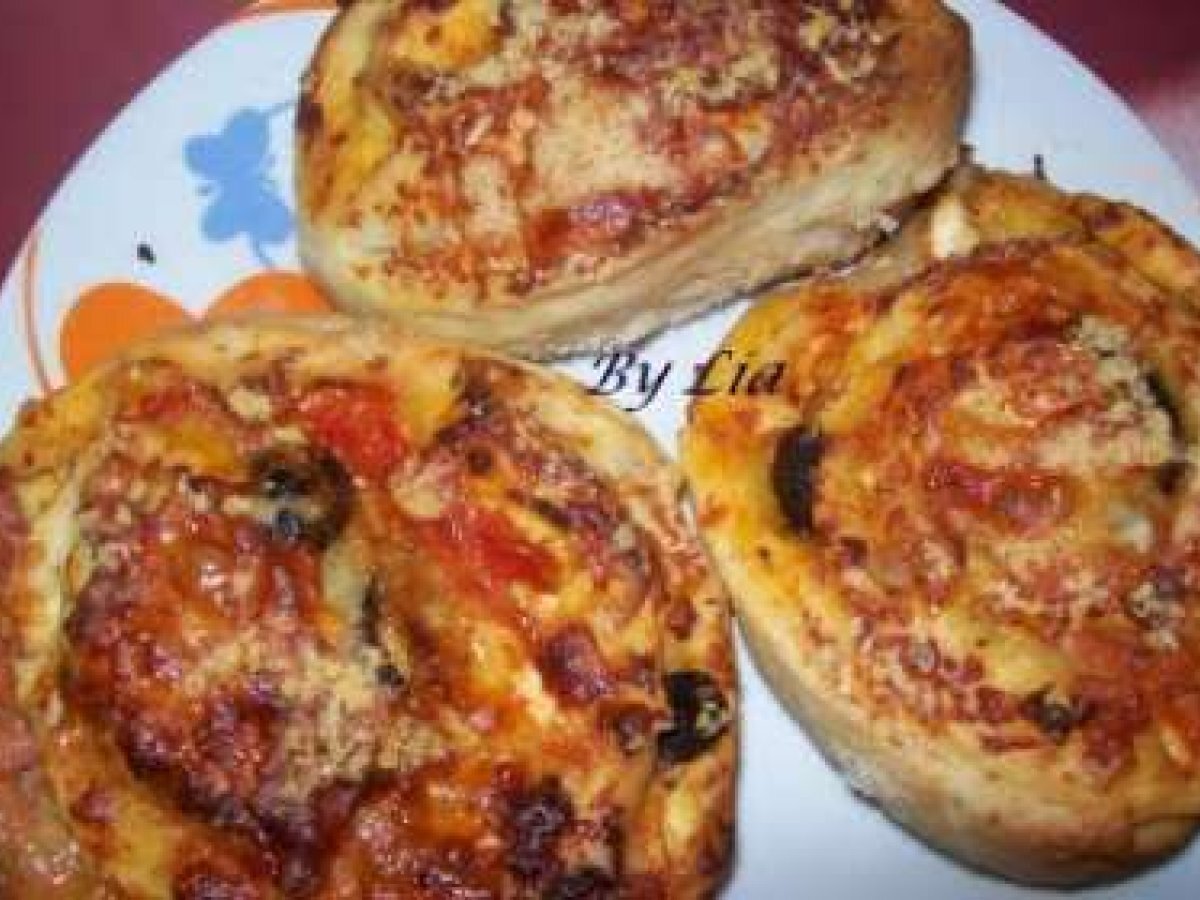 Mini pizza PrecedentulUrmătorul AntreuriUșor1 h 30 m Trimite unui prieten Printează pagina Adresează o întrebare autorului Postează o poză cu rețeta gătită de tine Ingrediente 8 Aluat: 1 kg faina, 1 pachet unt sau margarina, 3 lg smantana, 3 lg iaurt, 1 lingurita drojdie uscata dizolvata intr-o ceasca de lapte caldut... Umplutura: 500g salam sau sunca presata 300g cascaval 200 g branza telemea 3-4 felii de gogosar murat masline 200 g parmezan sos de rosii sau ketchap
