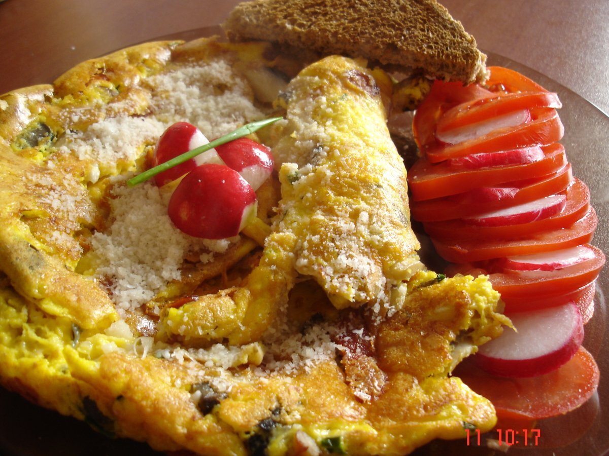 Omleta speciala PrecedentulUrmătorul AntreuriFoarte ușor20 min Trimite unui prieten Printează pagina Adresează o întrebare autorului Postează o poză cu rețeta gătită de tine Ingrediente 2 4 oua telemea de vaca rasa cascaval ras branza cu mucegai albastru branza camemebert masline negre salam 1 carnat oltenesc 1 ciuperca parmesan ras 4 fire chives