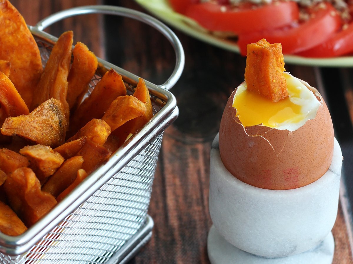 Pentru o cină simplă, eficientă, ne place să facem ouă fierte moi. Și în loc de pâine proaspătă, facem cartofi prăjiți pentru înmuiat.