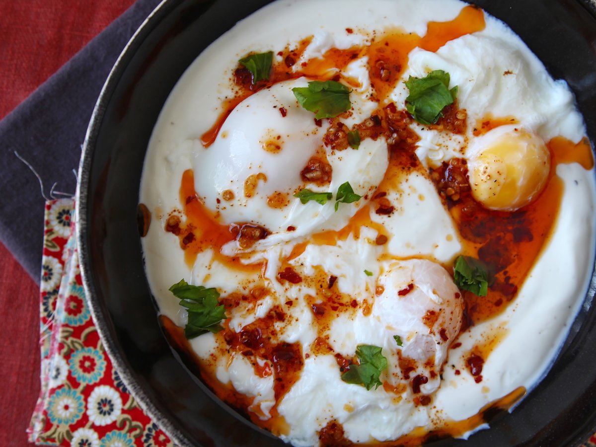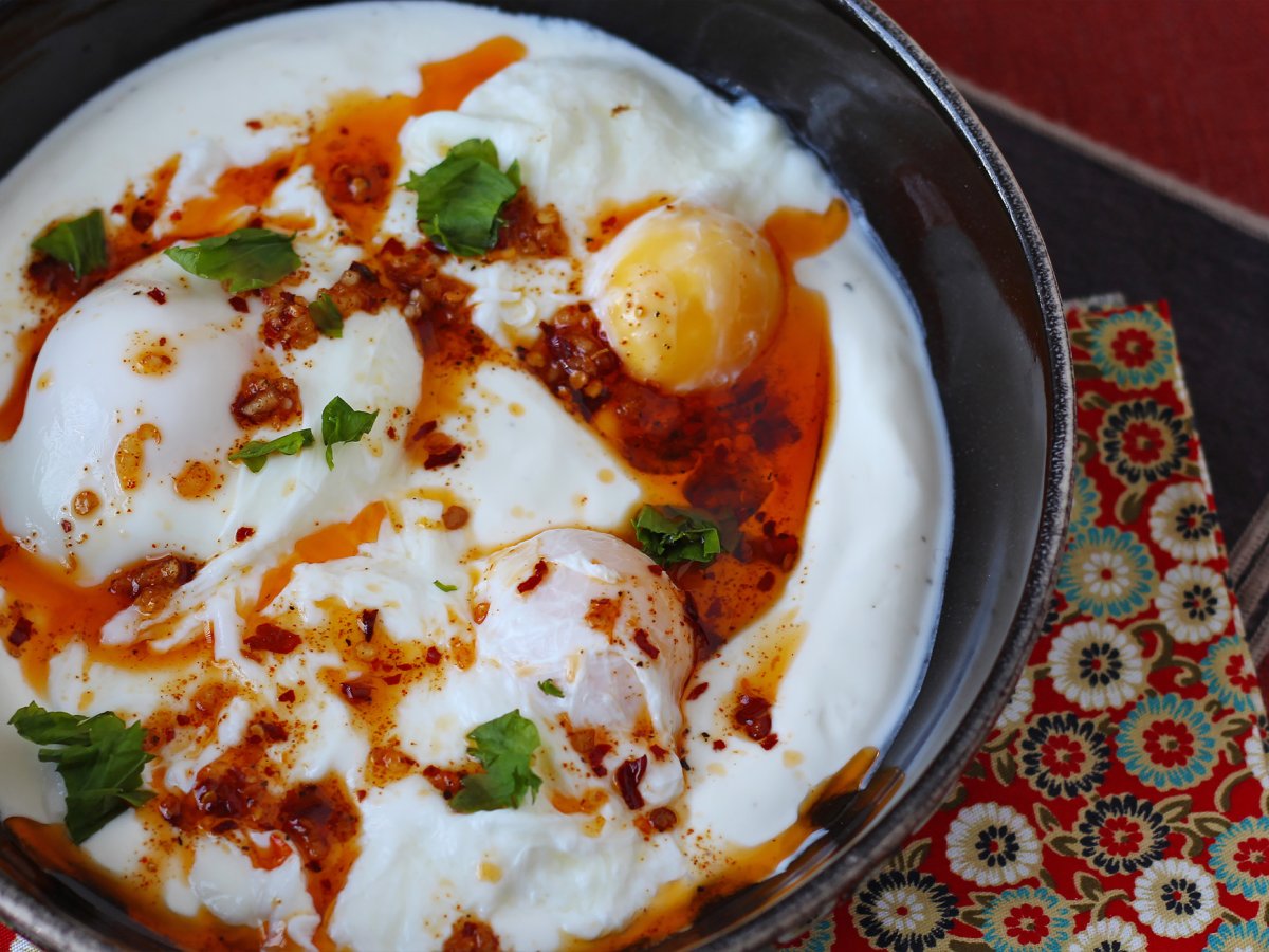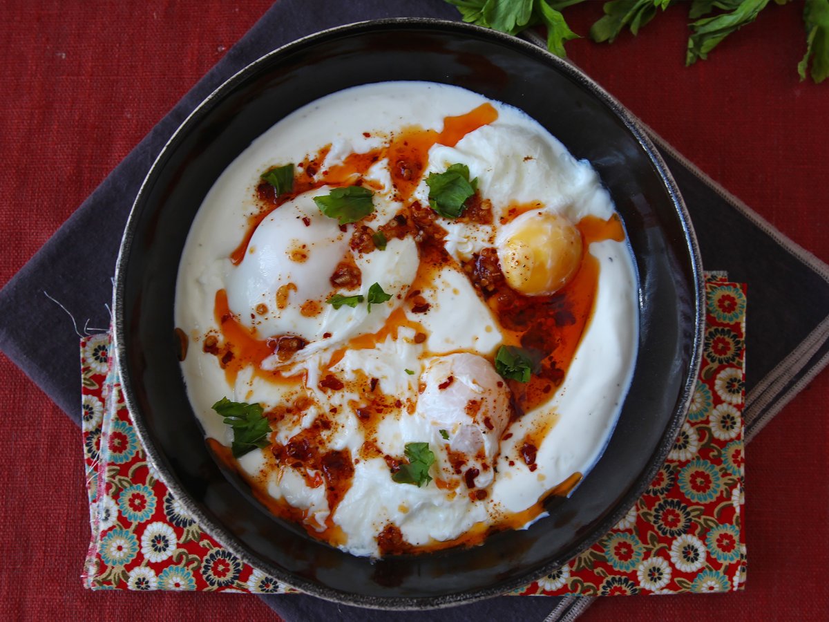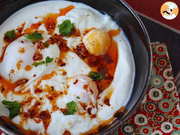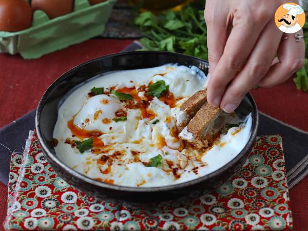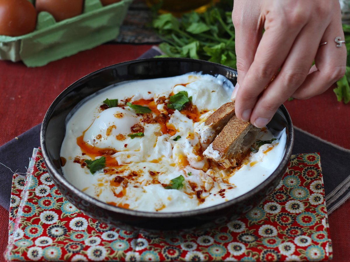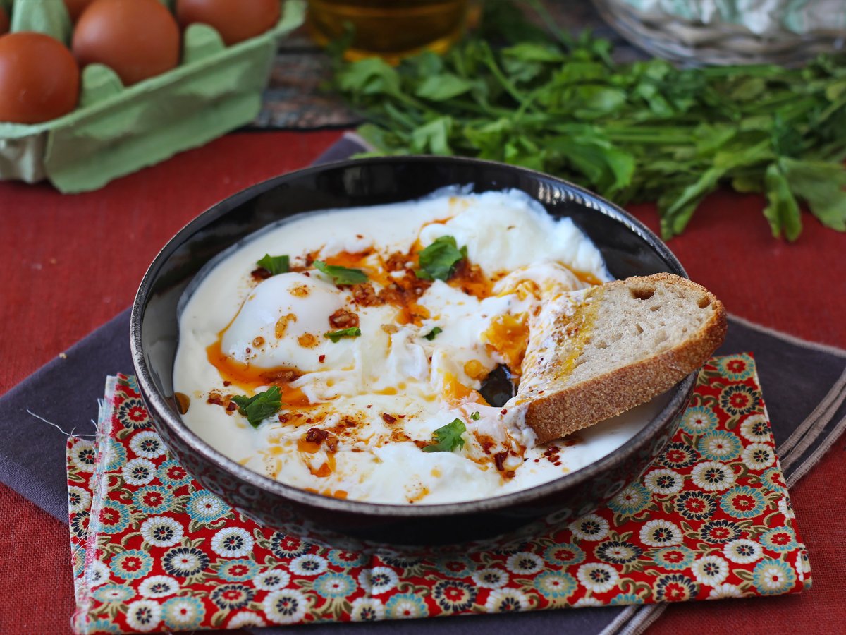 Ouăle turcești cunoscute și sub numele de çılbır, sunt un fel de mâncare care le are pe toate: delicios, reconfortant și plin de savoare! Ouă înăbușite, așezate delicat pe o bază cremoasă de iaurt grecesc. Și pentru a completa totul? Un ulei picant cu usturoi, paprika și fulgi de ardei iute pentru a vă trezi papilele gustative. Cu câteva frunze de pătrunjel proaspăt pentru o notă de verdeață și felii de pâine prăjită pentru a completa totul, este un deliciu garantat. Această mâncare rapidă și ușoară este un adevărat concentrat de arome ;-)
