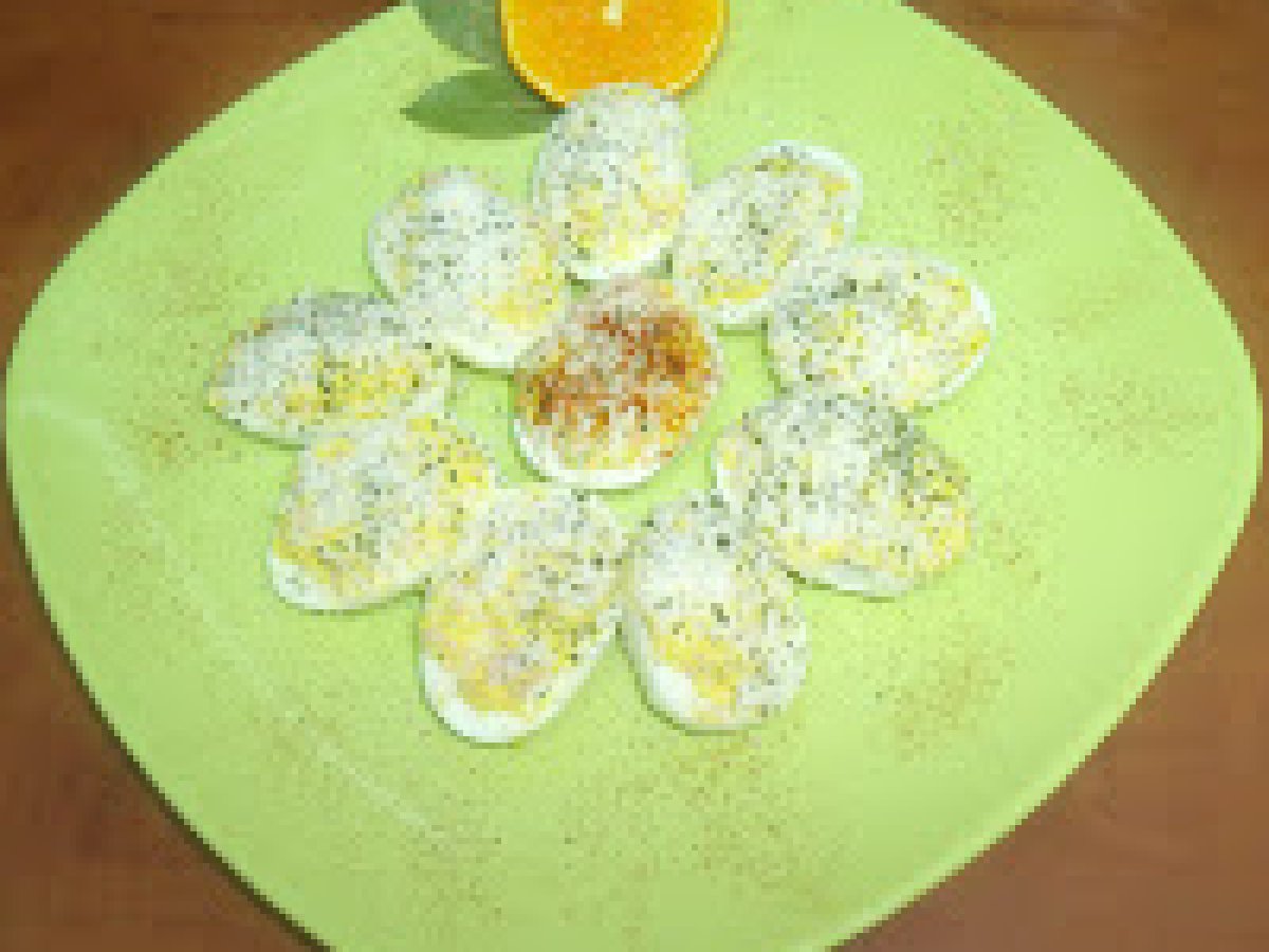 Oua umplute, fara maioneza! PrecedentulUrmătorul AntreuriFoarte ușor30 min Trimite unui prieten Printează pagina Adresează o întrebare autorului Postează o poză cu rețeta gătită de tine Ingrediente 4 8-10 oua rosii, de casa cate doriti si de care aveti 2-4 felii sunca 1 catel usturoi 1 lingura mustar 6-8 masline verzi 2-3 linguri parmezan zeama de la o jumatate de lamaie patrunjel verde sau uscat 1 lingura ulei sare, piper dupa gust